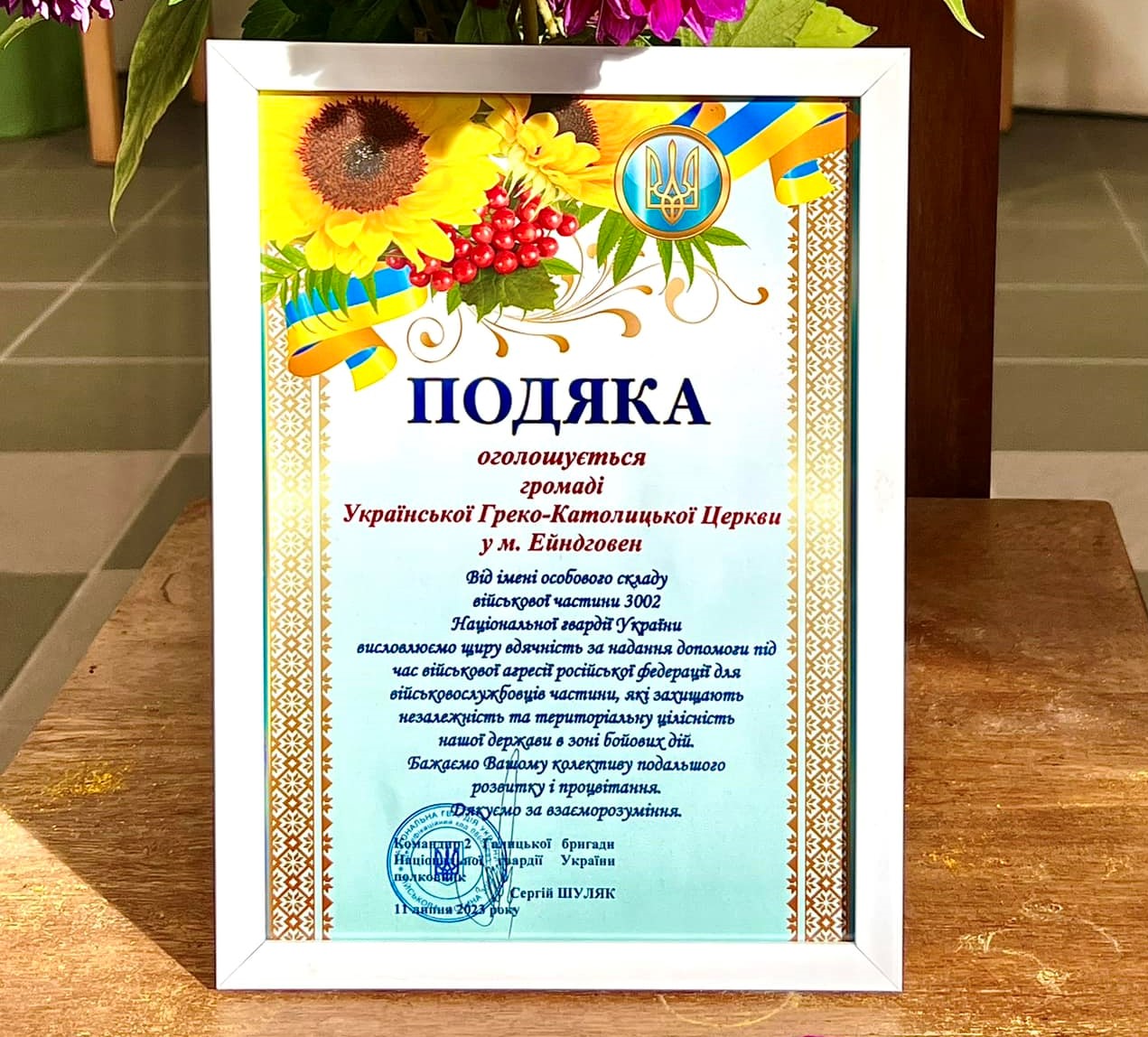 Подяка від воїнів 2-ї окремої Галицької бригади Національної гвардії України, фото з фейсбук-сторінки парафії