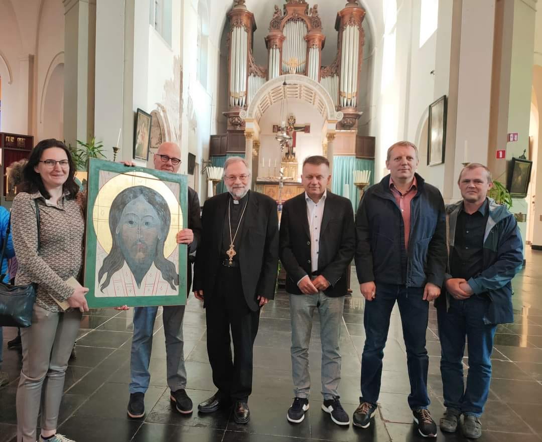 Представники громади УГКЦ в Ейндховені з іконою «Спаса Нерукотворного»