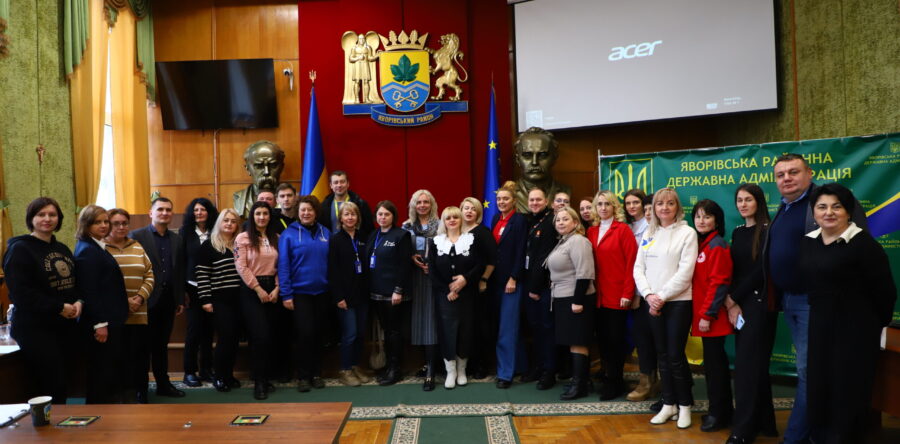 У Яворівській військовій адміністрації відбулась друга зустріч представників міжнародних партнерів з керівниками військової адміністрації, керівниками громад району, менеджерами Офісів підтримки та керівниками прихистків.