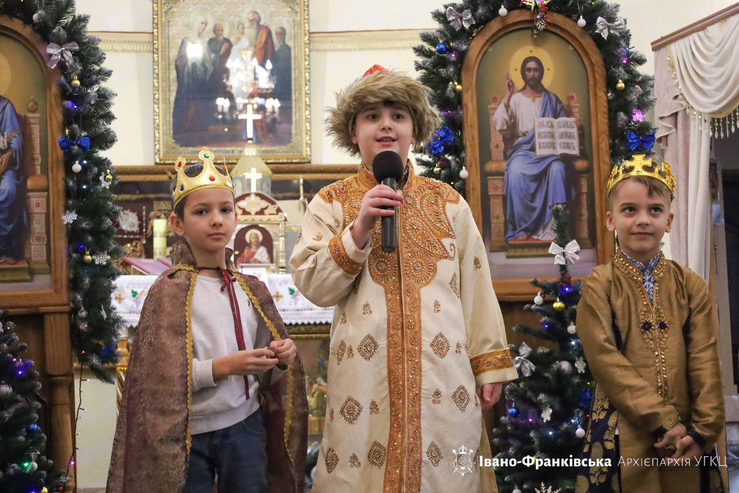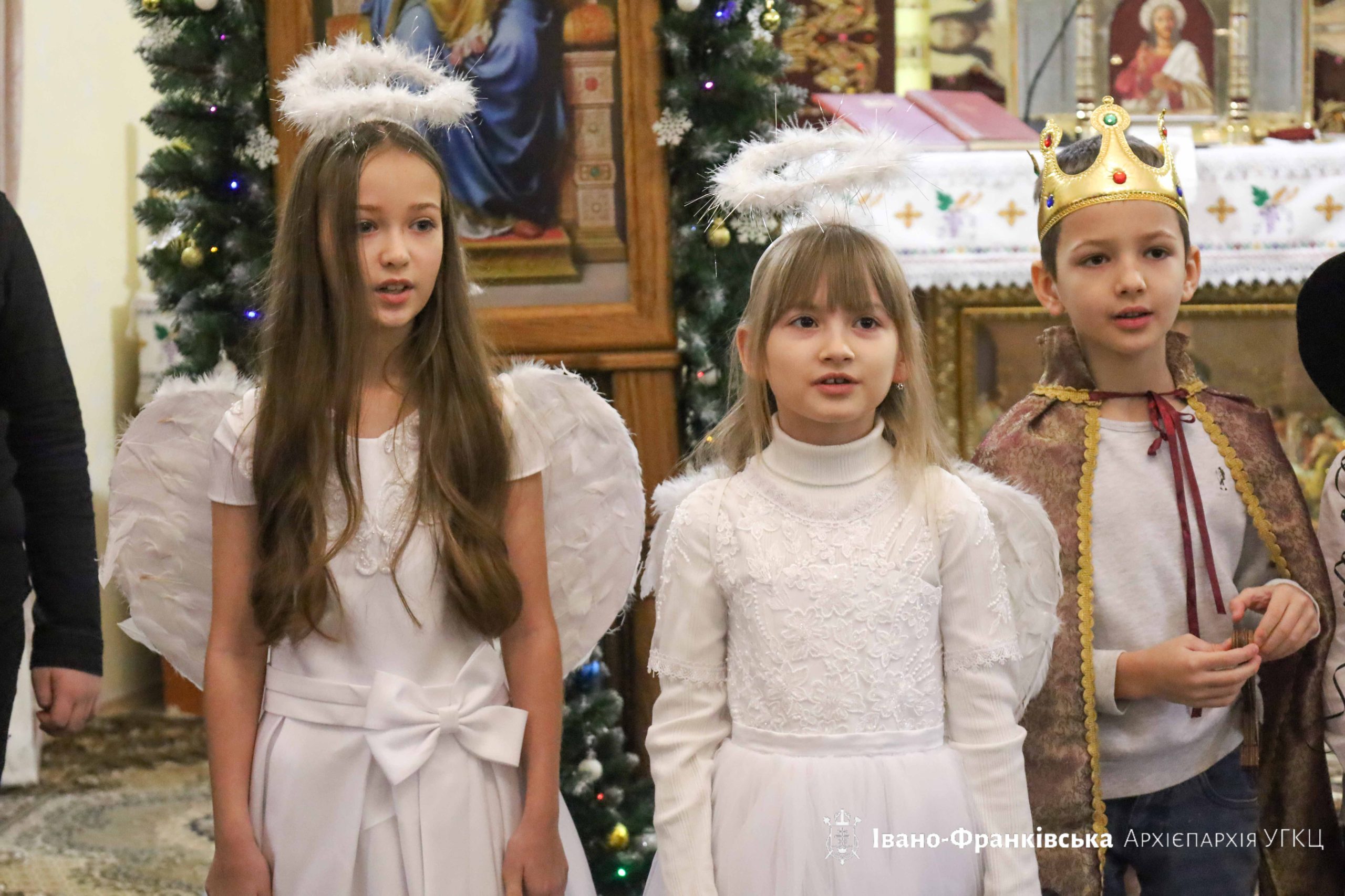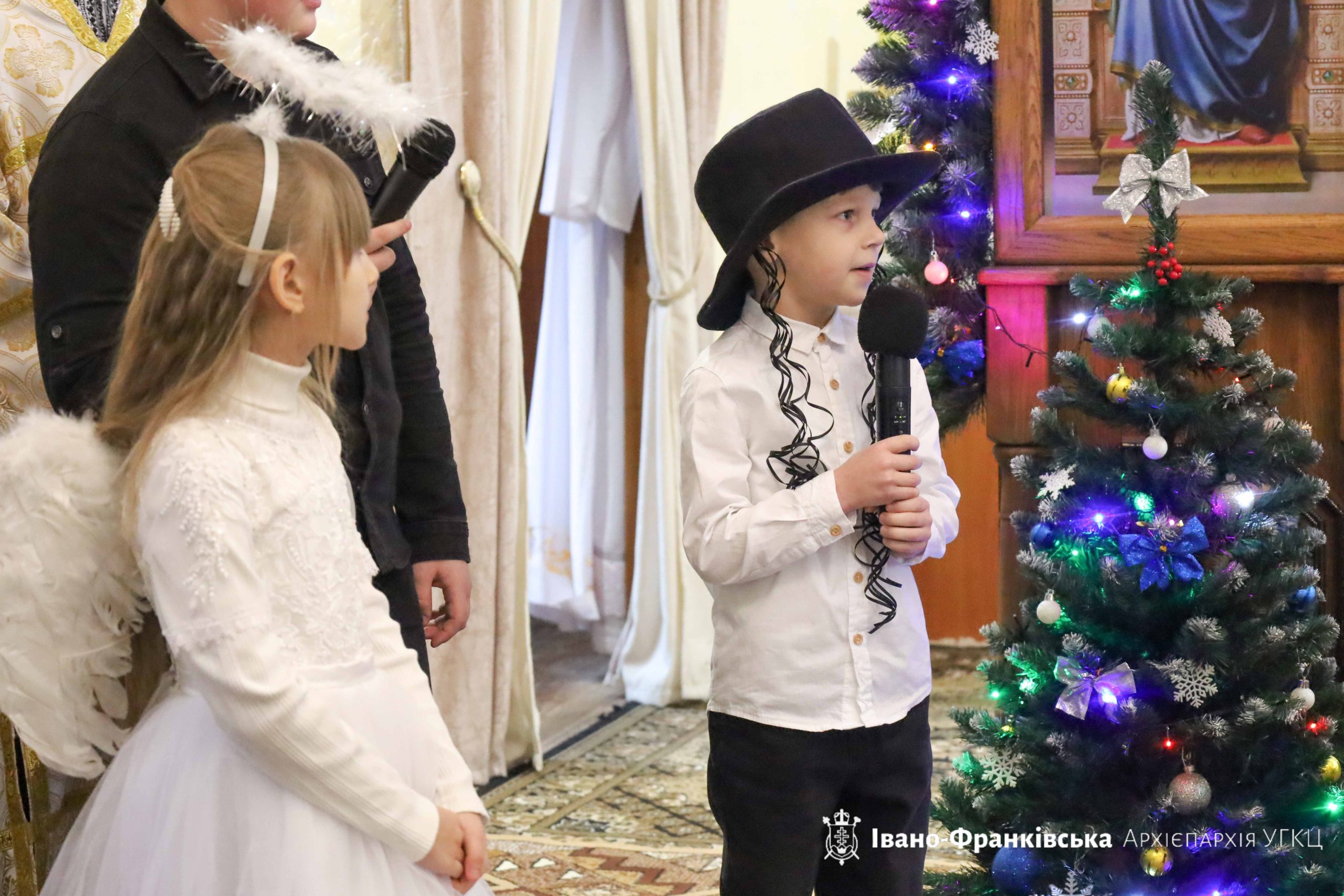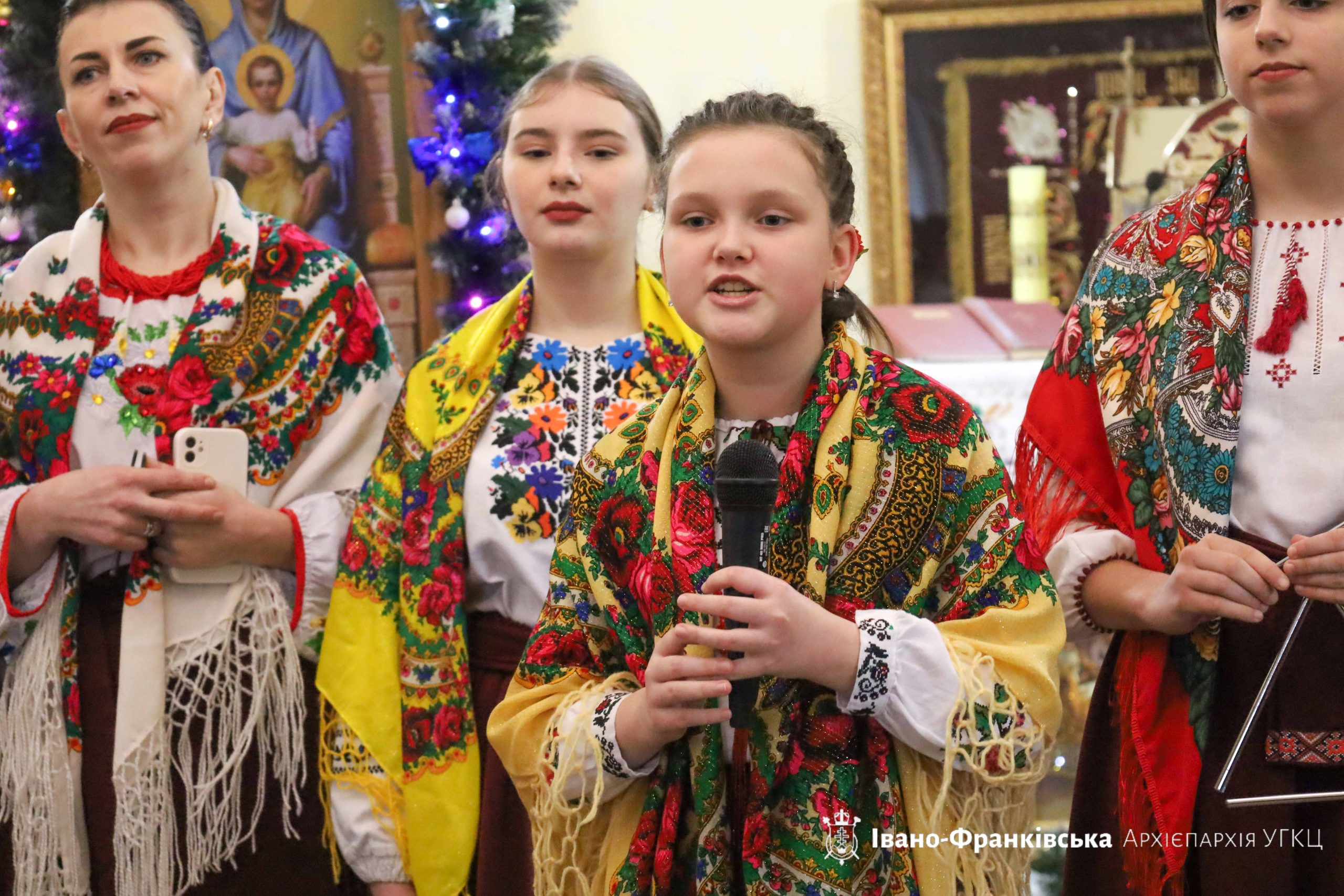 Опісля для всіх присутніх у храмі виступили учасники вокального ансамблю «Дзвіночки» Івано-Франківської дитячої музичної школи №1 ім. Миколи Лисенка, які чудовим виконанням колядок прославили новонародженого Господа.