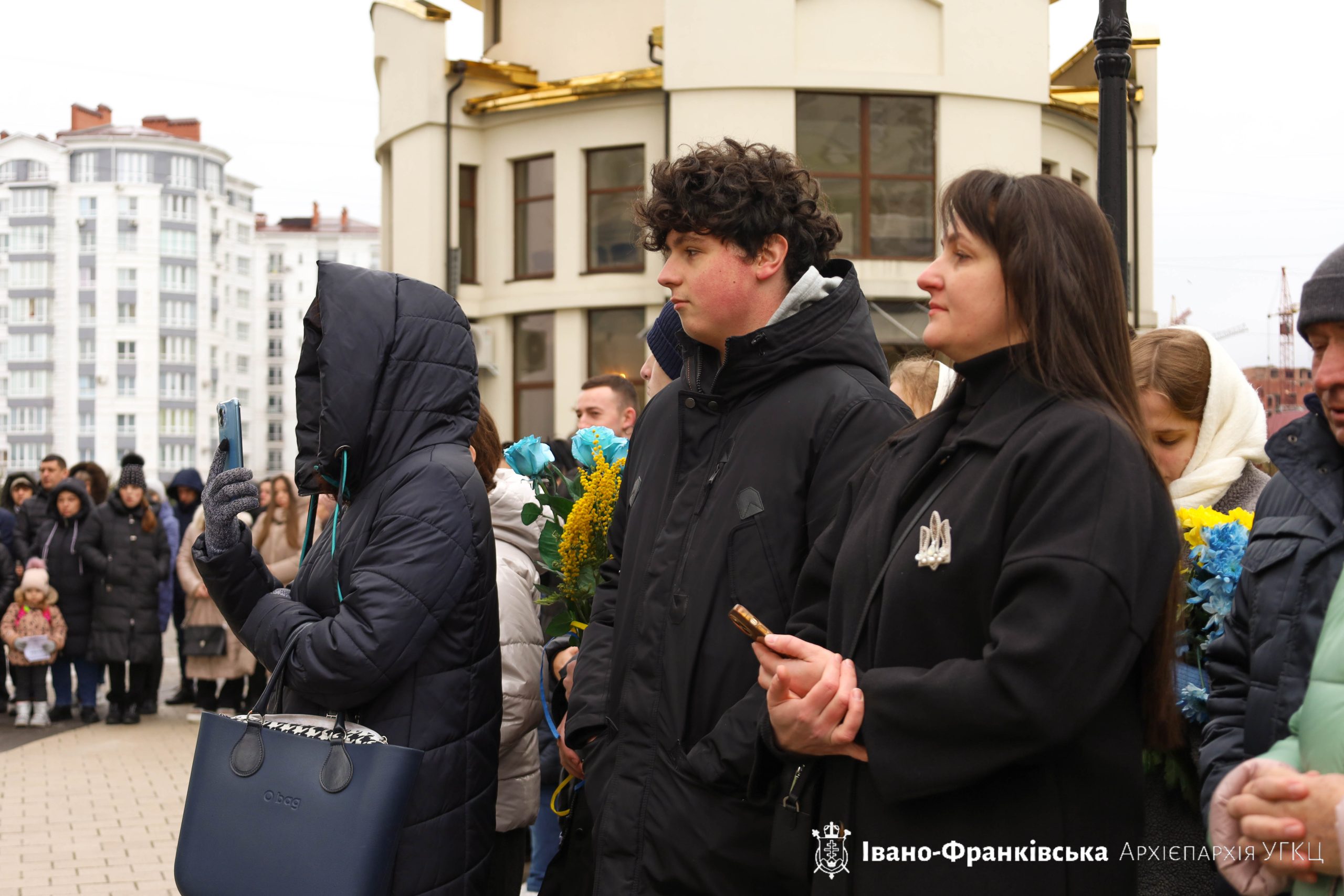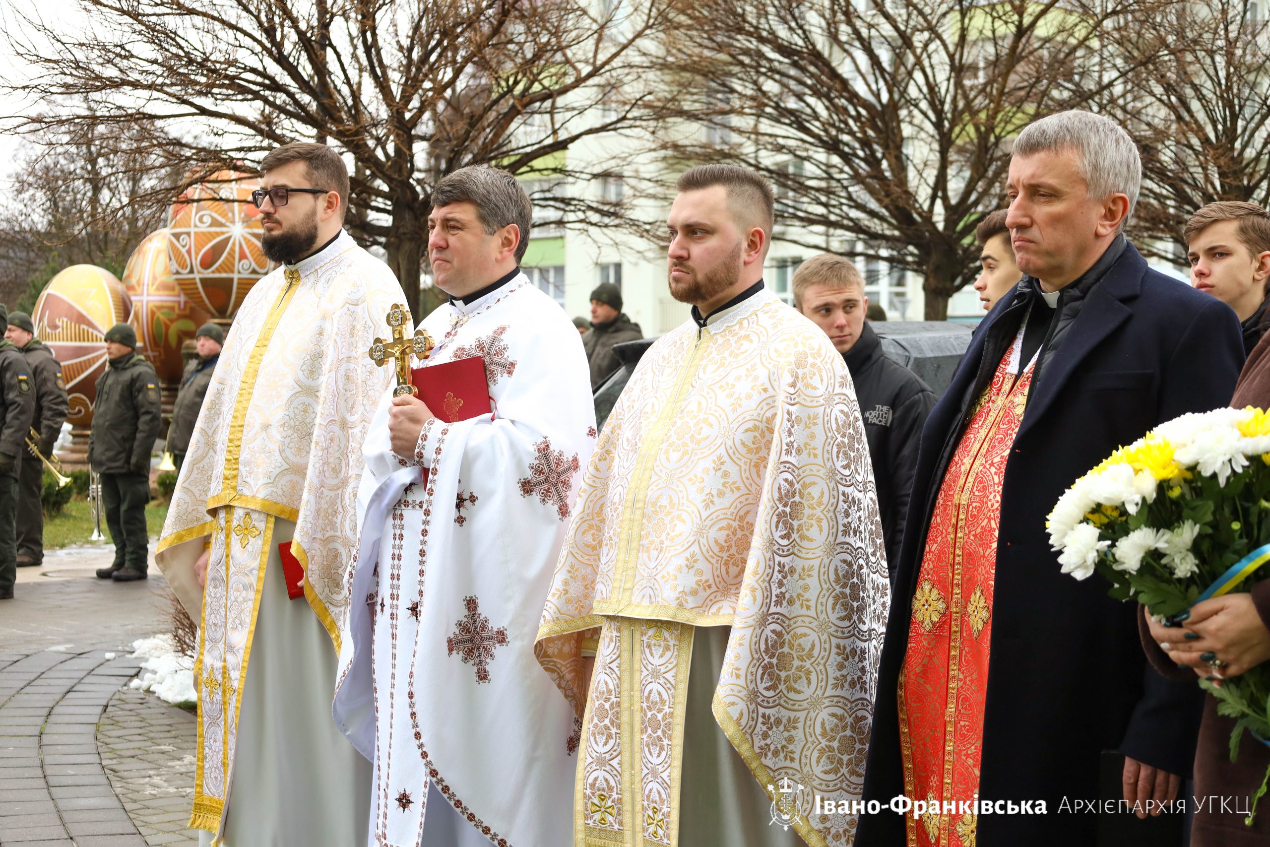 Під час заходу священнослужителі Івано-Франківської Архієпархії УГКЦ, серед яких о. Степан Балагура, синкел у справах духовенства та священничих родин, о. Євген Андрухів, адміністратор парафії Всіх Святих, й сотрудники о. Михайло Макар та о. Володимир Ганжа, відслужили панахиду за полеглим Воїном та за всіма, хто віддав своє життя у боротьбі за перемогу у війні.
