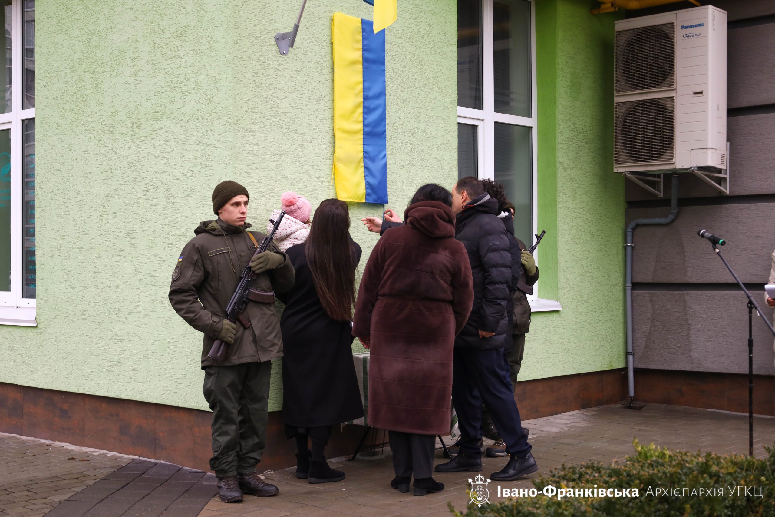 Опісля традиційної Божественної Літургії у храмі Всіх Святих УГКЦ всі молільники перейшли до будинку, який знаходиться поблизу святині, аби стати свідком урочистої події — відкриття анотаційної дошки Герою України, талановитому мозаїсту та активному парафіянинові УГКЦ — Тарасу Процаху.