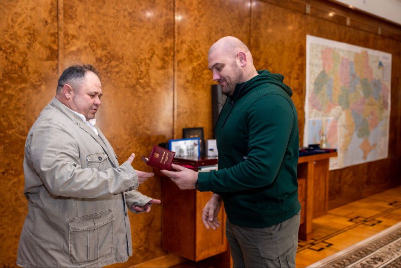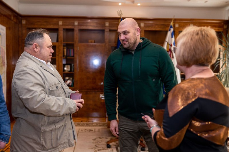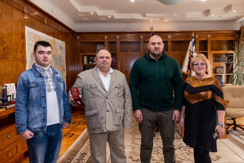 Передав власнику державну відзнаку «Заслужений донор України». Поспілкувався з його «групою підтримки» – дружиною і сином.