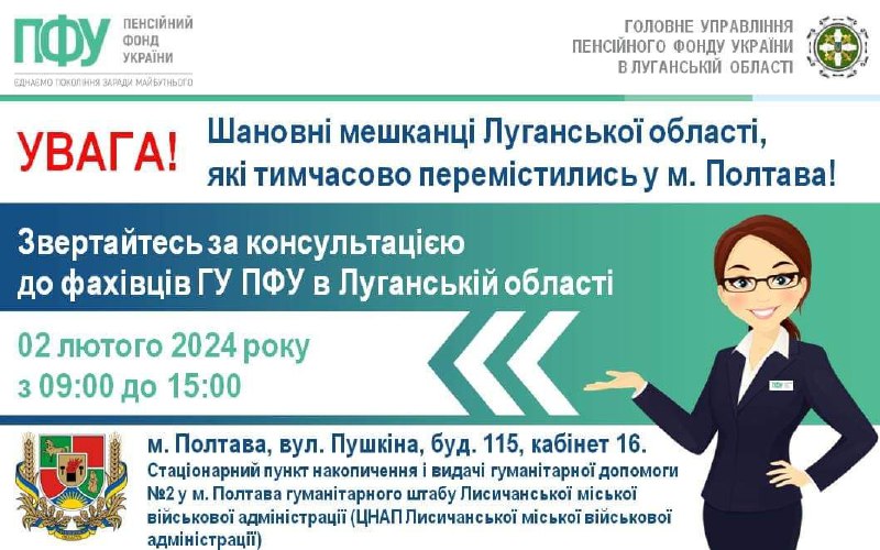 У Полтаві 2 лютого ВПО з Луганщини можуть звернутися за роз’ясненнями стосовно пенсійних питань