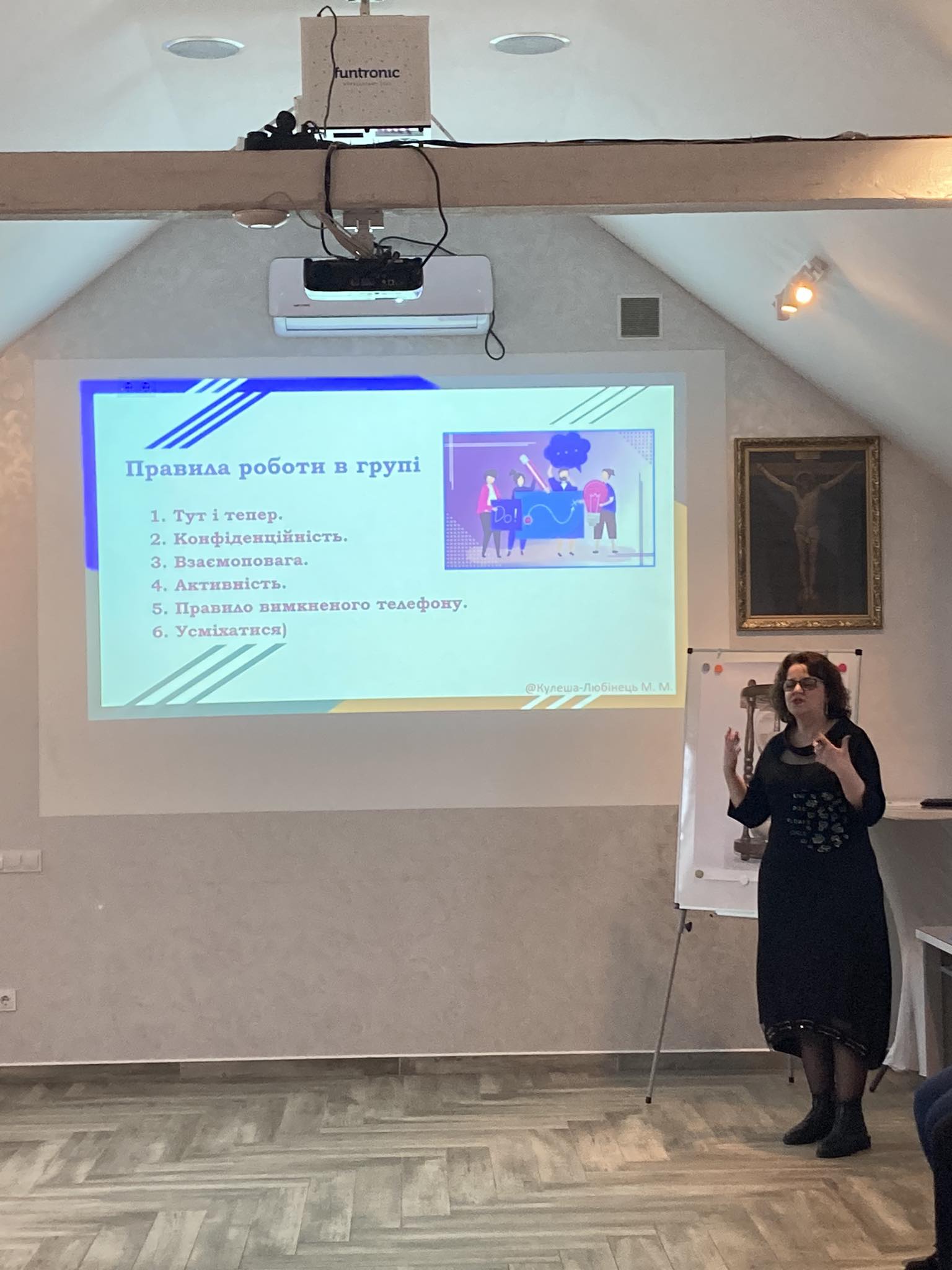 Другу зустріч провели о. Йосафат Фітель, ЧСВВ, та п. Мирослава Кулеша-Любінець, кандидатка психологічних наук, доцентка кафедри клінічної та реабілітаційної психології Прикарпатського національного університету імені Василя Стефаника.