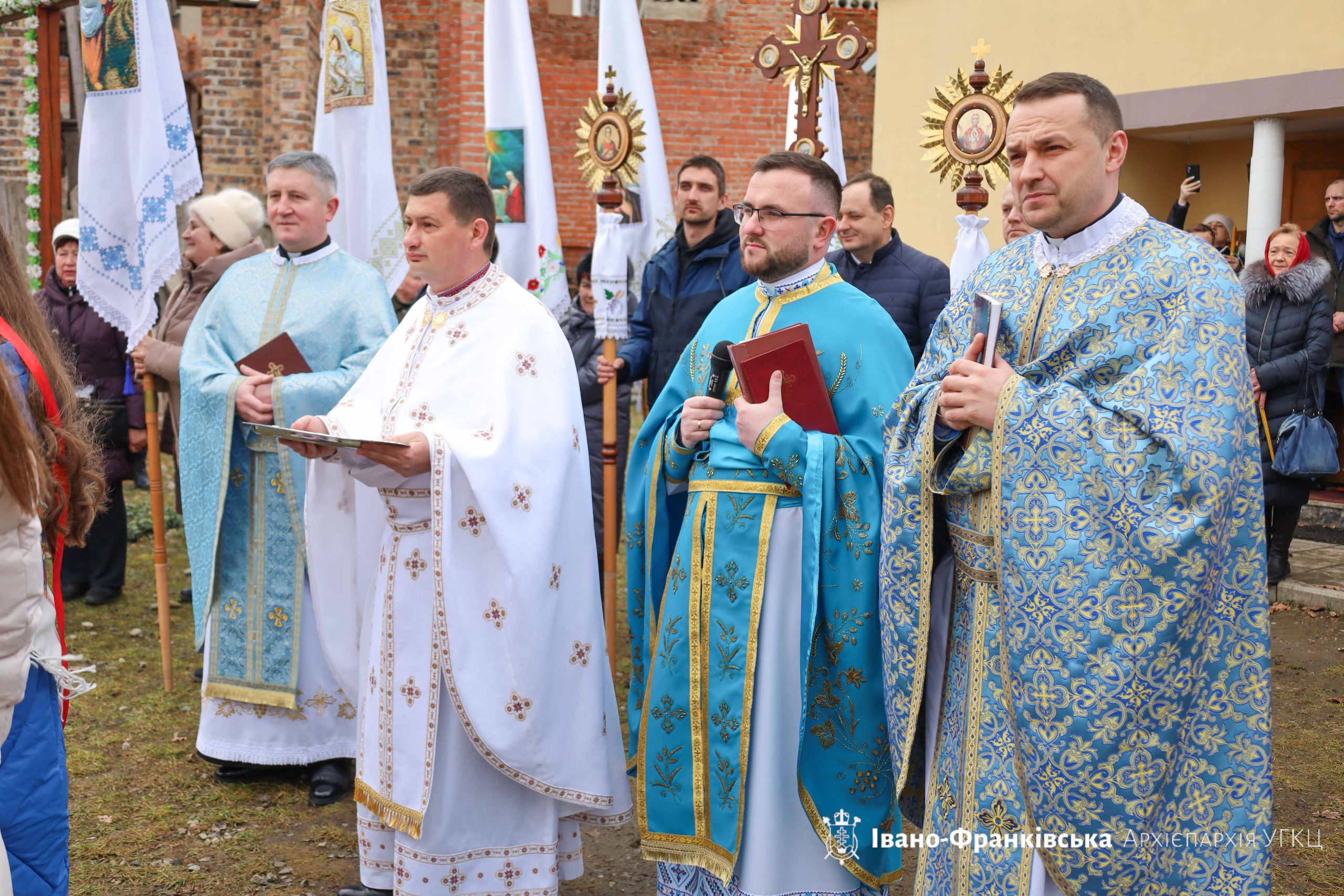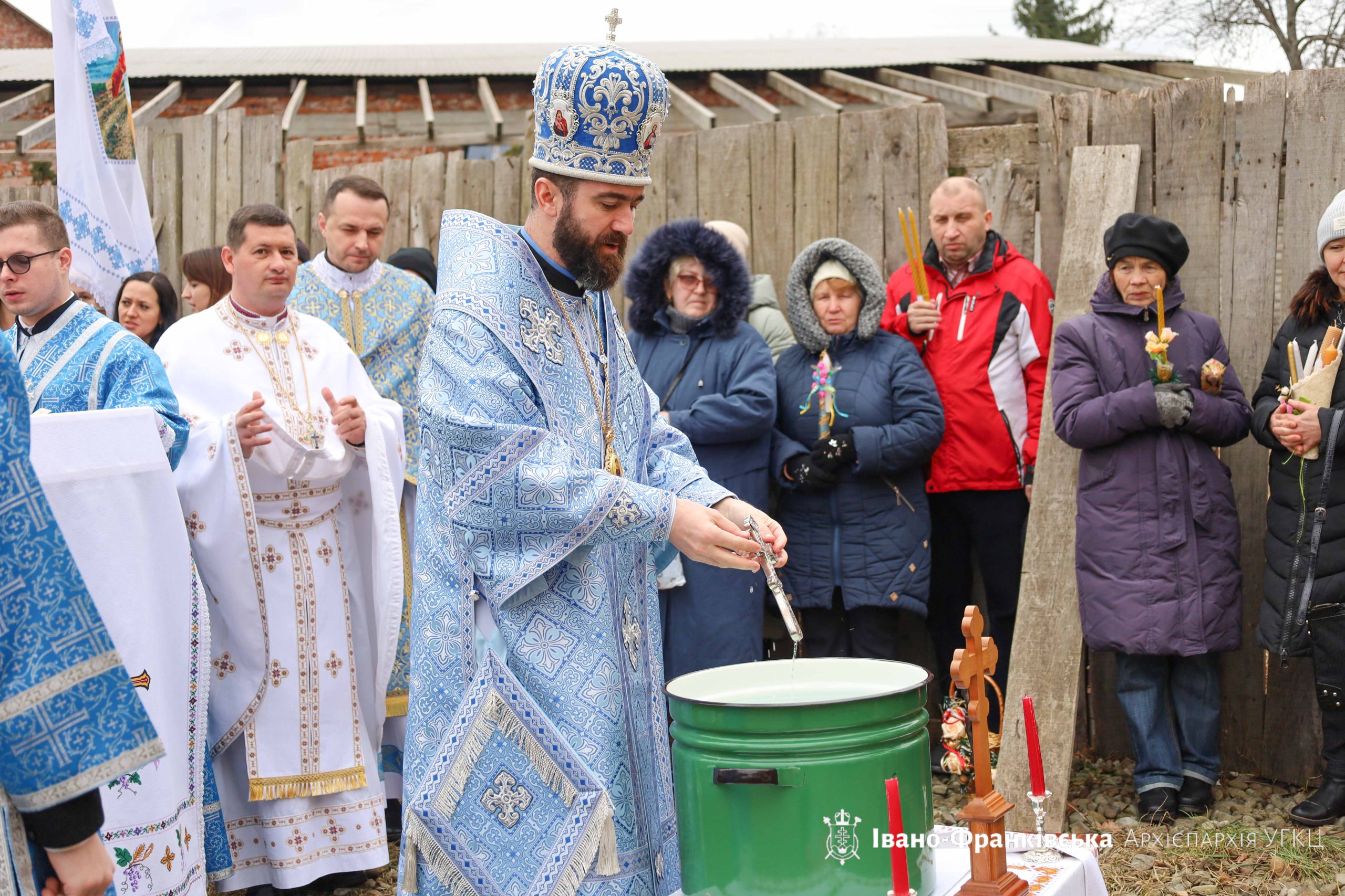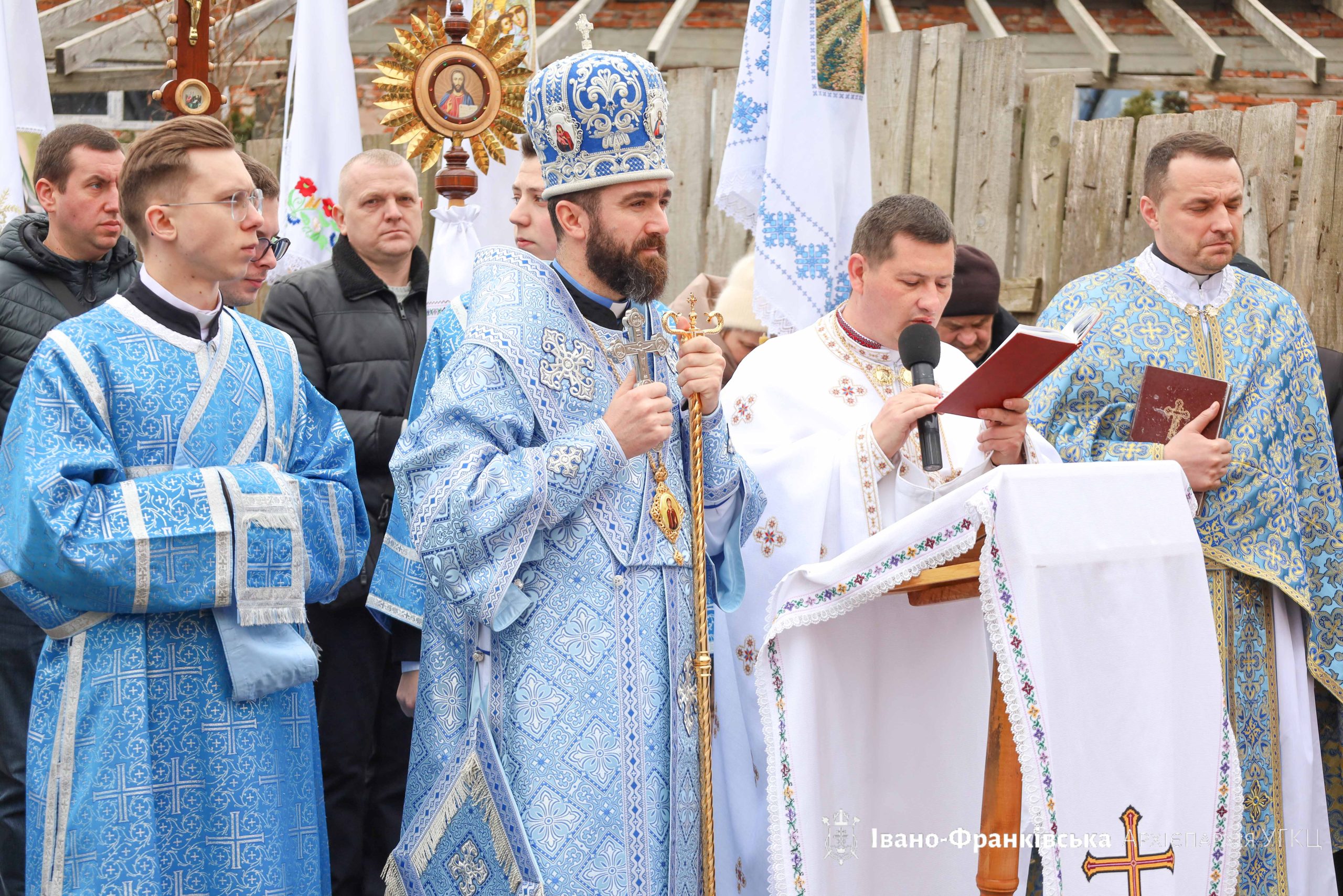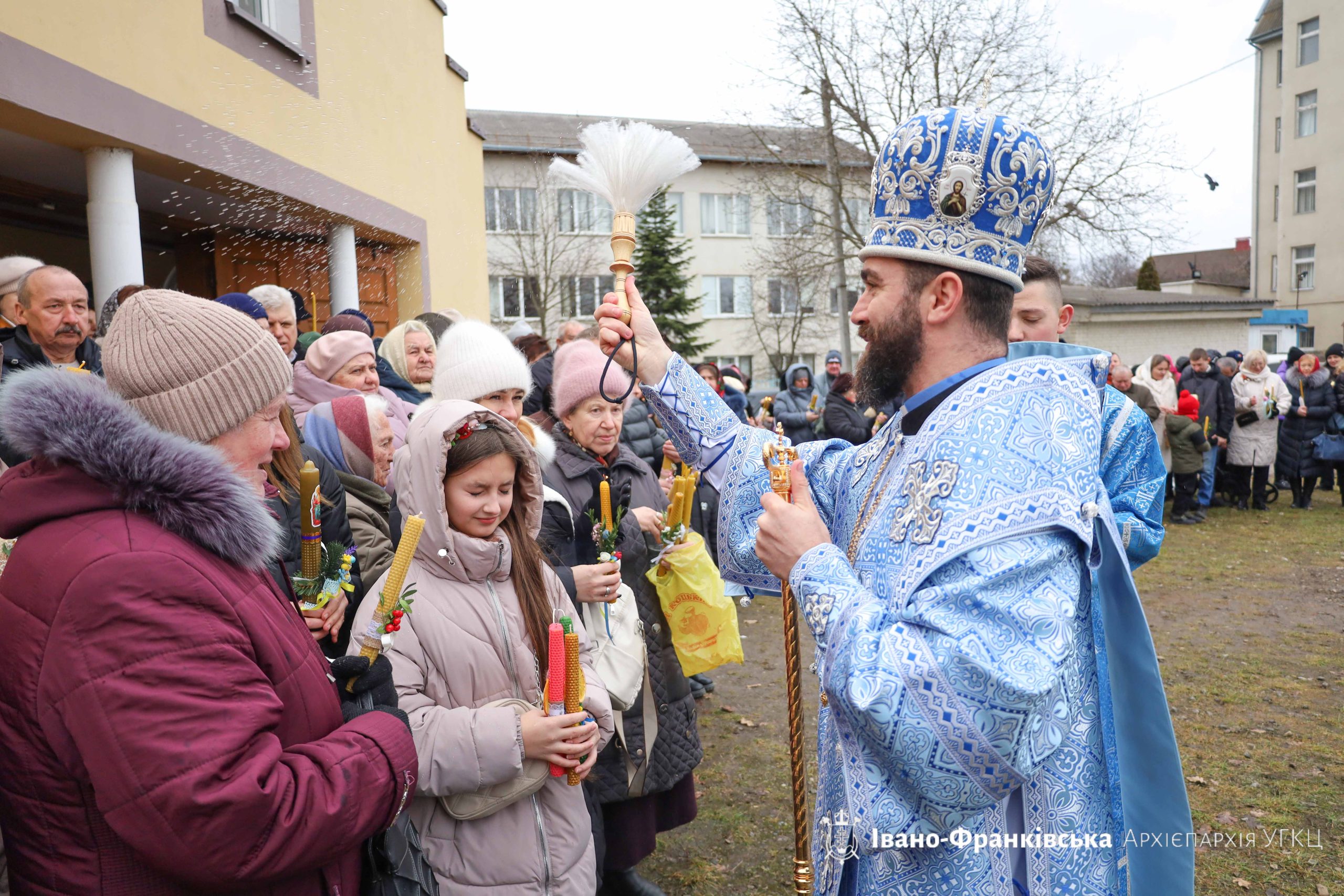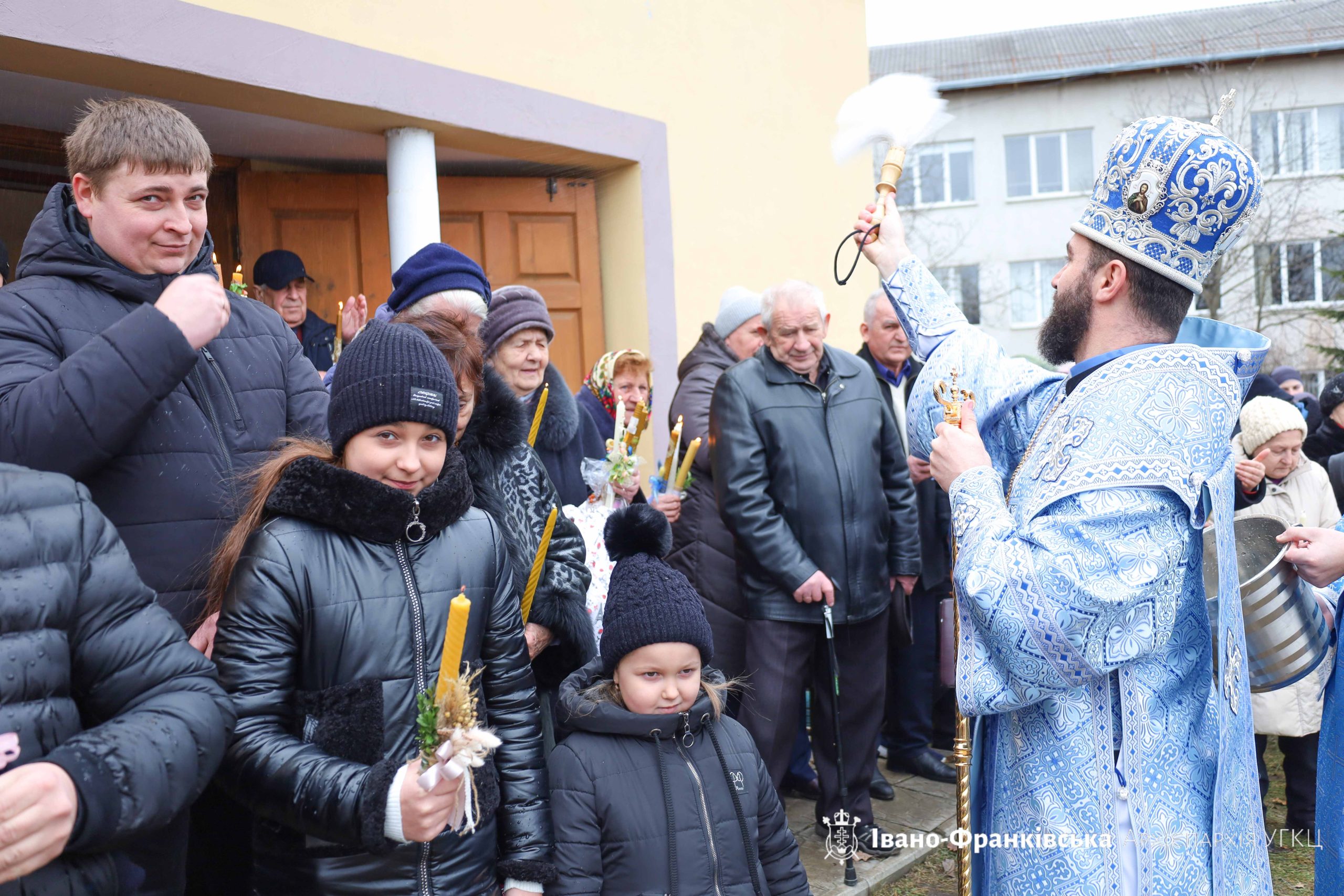 Згодом відбулося святкове мирування, а відтак духовенство та вірні вийшли на подвір’я храму, де відбувся Чин водосвяття та Чин освячення стрітенських свічок, які звершив Архієрей у співслужінні душпастирів.