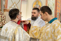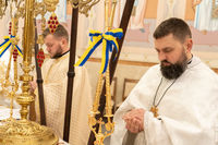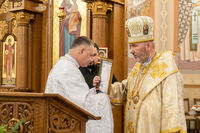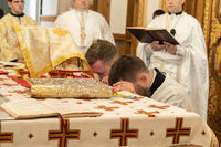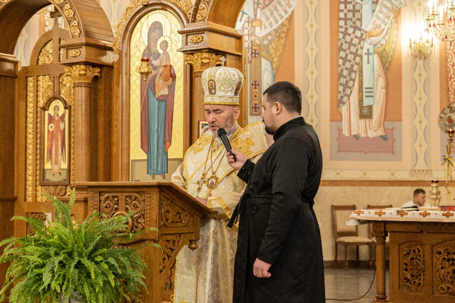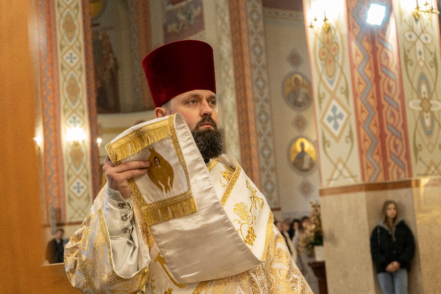 Після Херувимської пісні єпарх Коломийський здійснив ієрейську хіротонію: перевів дияконів Вʼячеслава Ляшенка та Віталія Коцура у священничий сан.