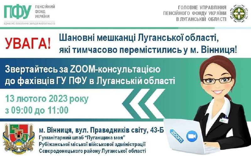 Із 09:00 до 11:00 спеціаліст Головного управління Пенсійного фонду України в Луганській області надасть онлайн-консультації з питань субсидій, пільг, страхових та пенсійних виплат.
