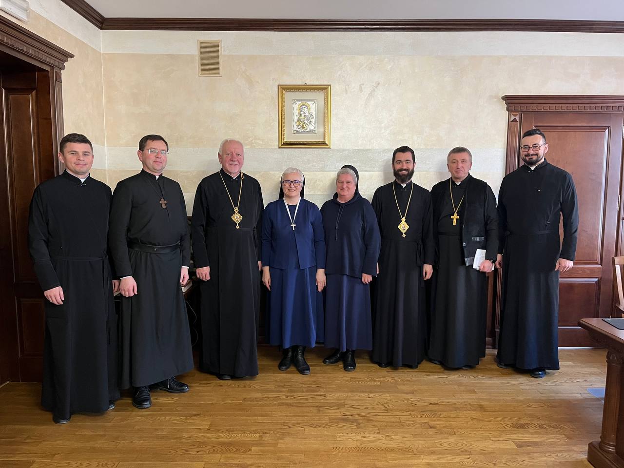 Цього дня у приміщенні архієпархіального управління зустрілися представники Івано-Франківської Архієпархії УГКЦ в особі Митрополита Володимира, Владики Миколи Семенишина, о. Степана Балагури, синкела у справах духовенства та священничих родин, о. Тараса Путька, ректора Івано-Франківської духовної семінарії, о. Йосафата Бойка, ВС, синкела у справах монашества, й о. Івана Горнецького, допоміжного економа, із сестрою Христофорою Буштин, Провінційною настоятелькою СНДМ, та сестрою Надією Старжинською.