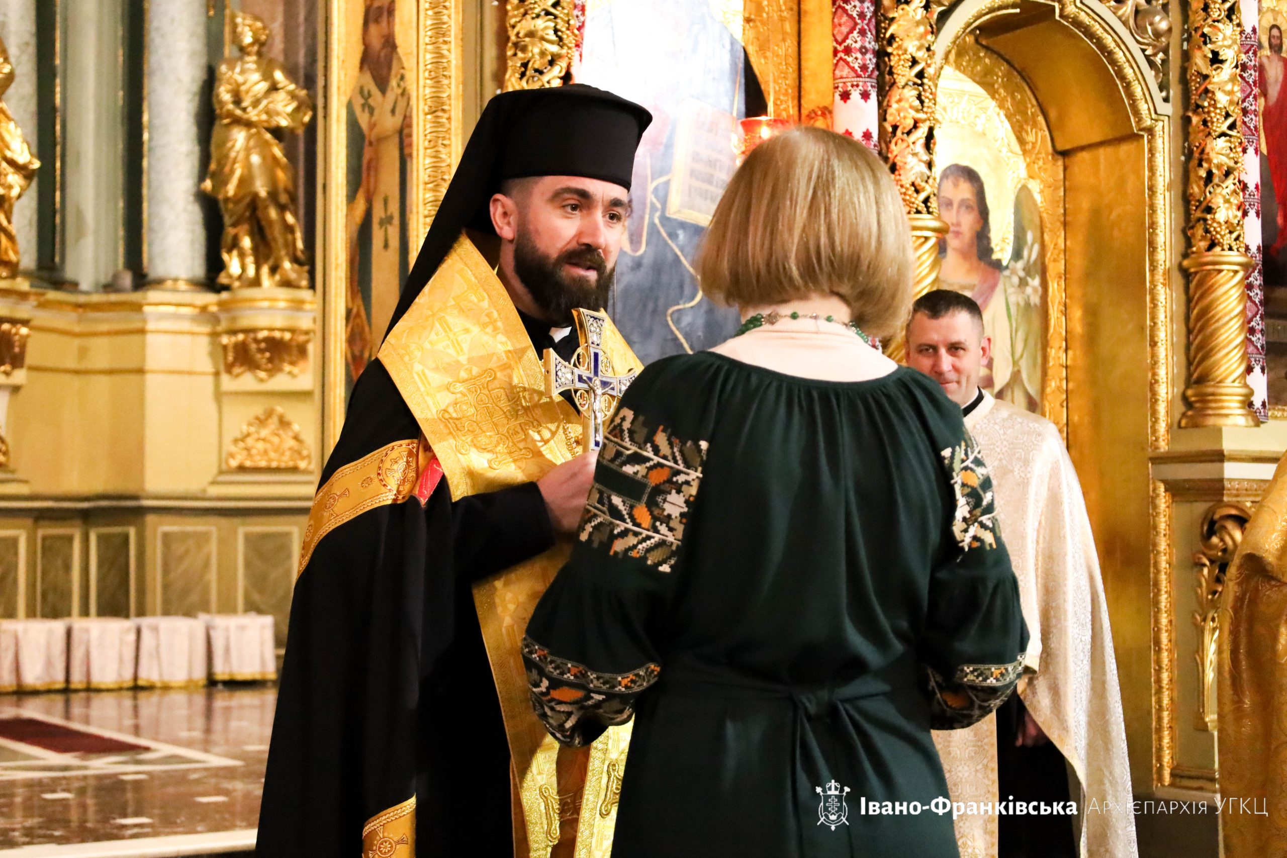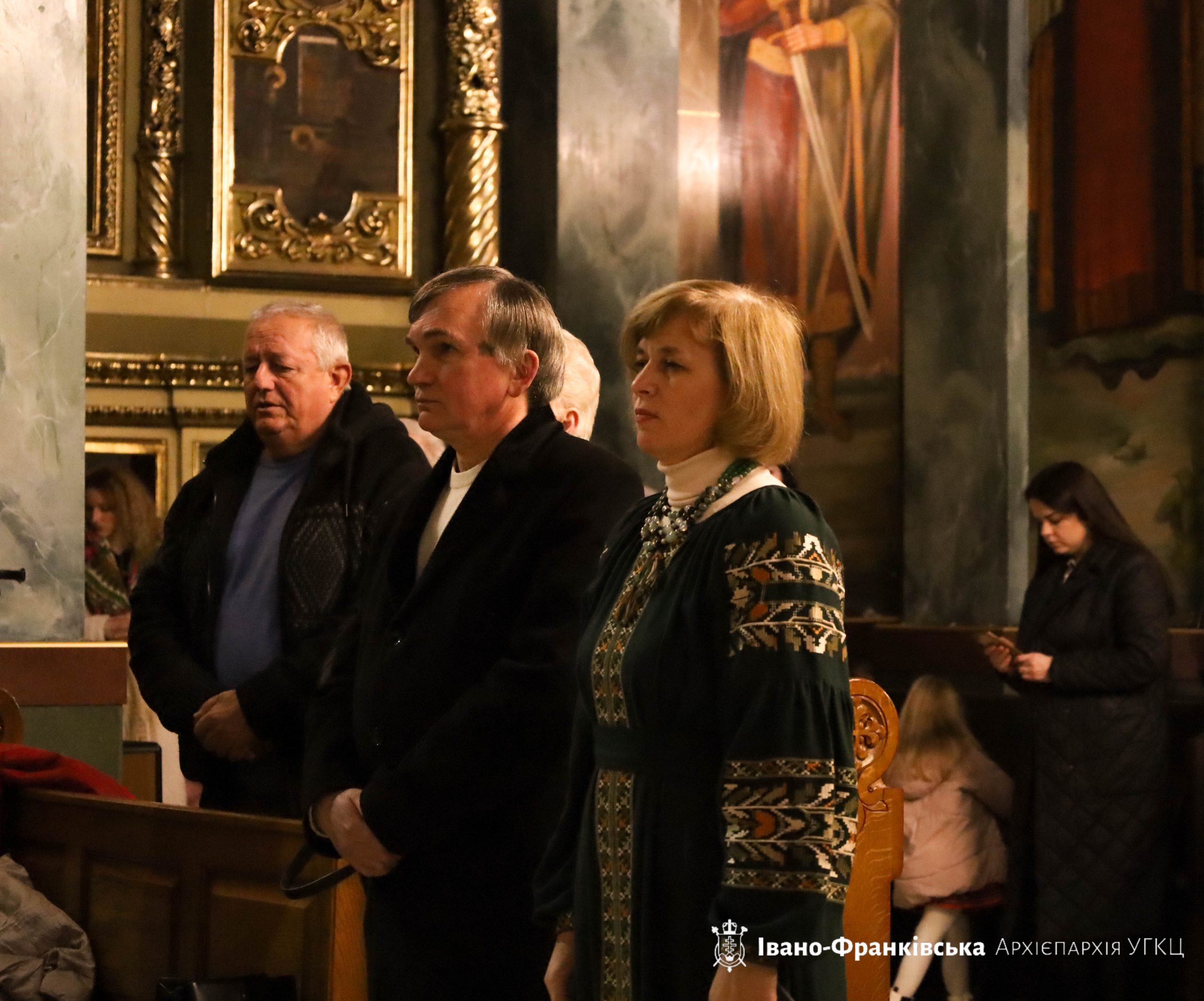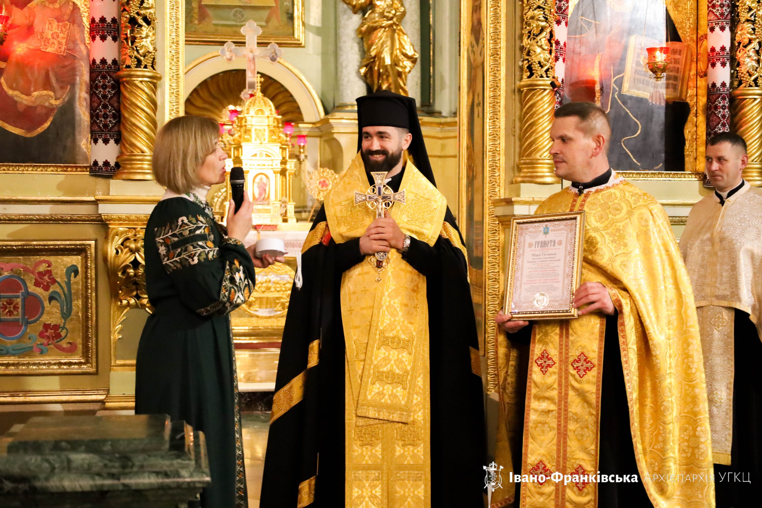 Відтак Владика Микола доручив о. Івану Жуку зачитати грамоту від Архієпископа і Митрополита Івано-Франківського Владики Володимира Війтишина для пані Марії Починок, директорки Центру освітніх інновацій Івано-Франківської міської ради, та для всіх учасників, як подяку за участь у конкурсі «Мереживо родинних колядок» та вагомий внесок у збереженні християнських традицій й популяризацію українських колядок.