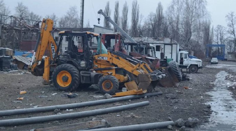 ▪️О 17:54 в м. Куп’янськ зафіксоване влучання у цивільне комунальне підприємство. Горіли пластикові труби та шість одиниць автотракторної техніки. Вибухом  пошкоджено 10 будівель.