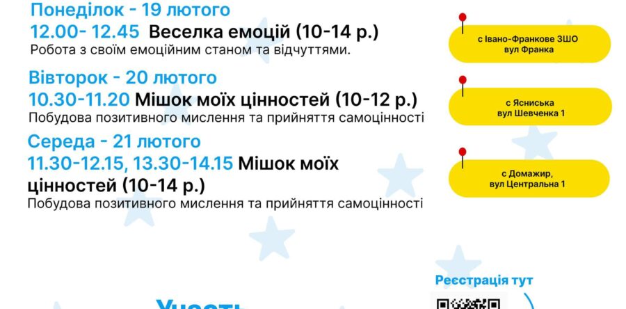 Графік візитів організацій-партнерів до координаційних офісів Яворівщини цього тижня 20.02-23.02: