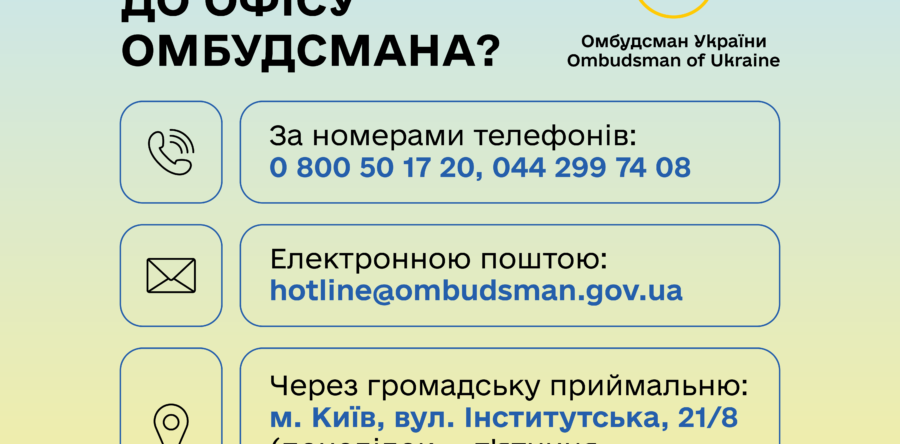 - За електронною поштою: hotline@ombudsman.gov.ua;