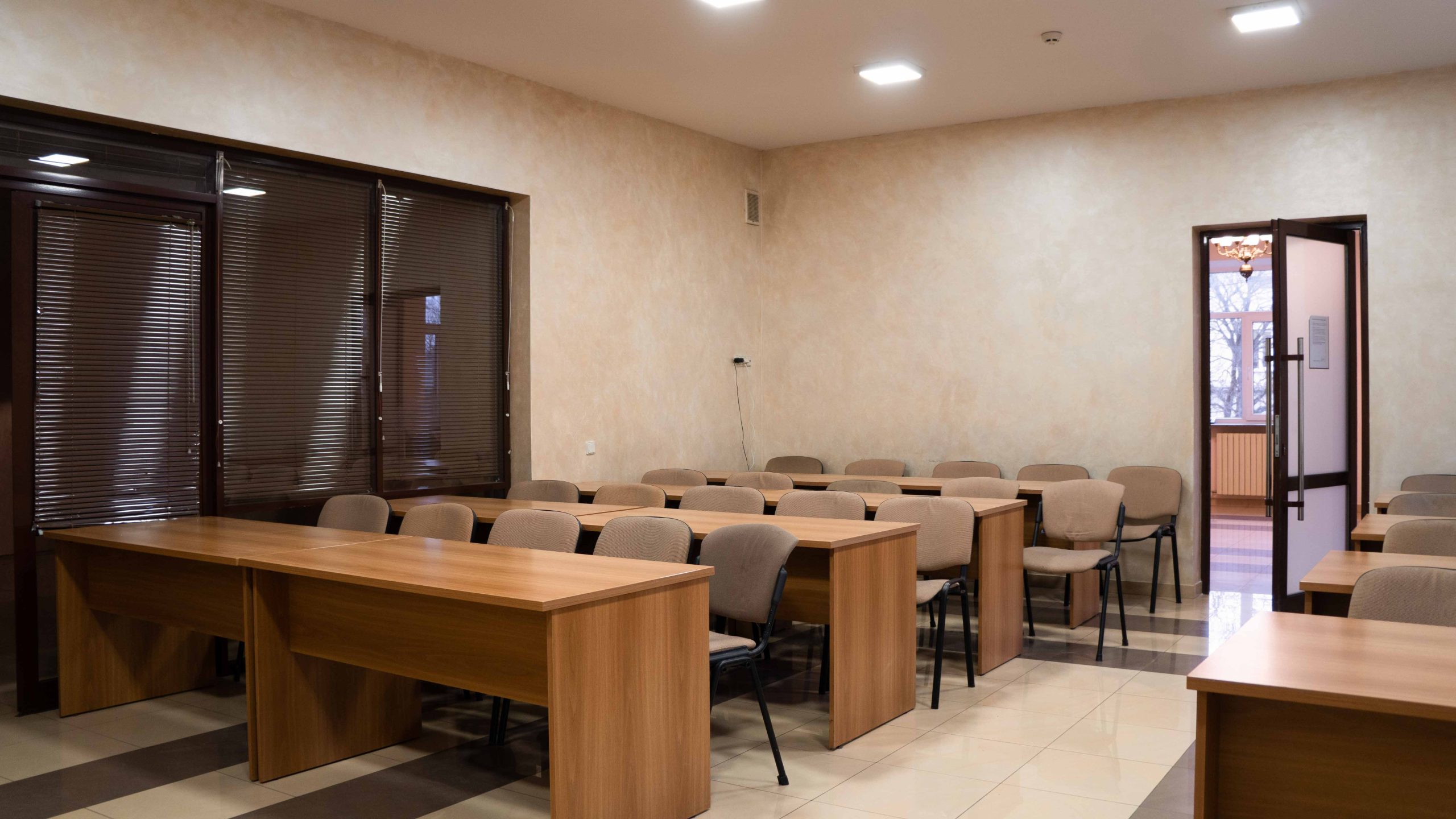 На першому поверсі розташовані кабінети ректорату, секретаріату, префектів; гардероб, рефектар, розмовниця та келії для проживання.