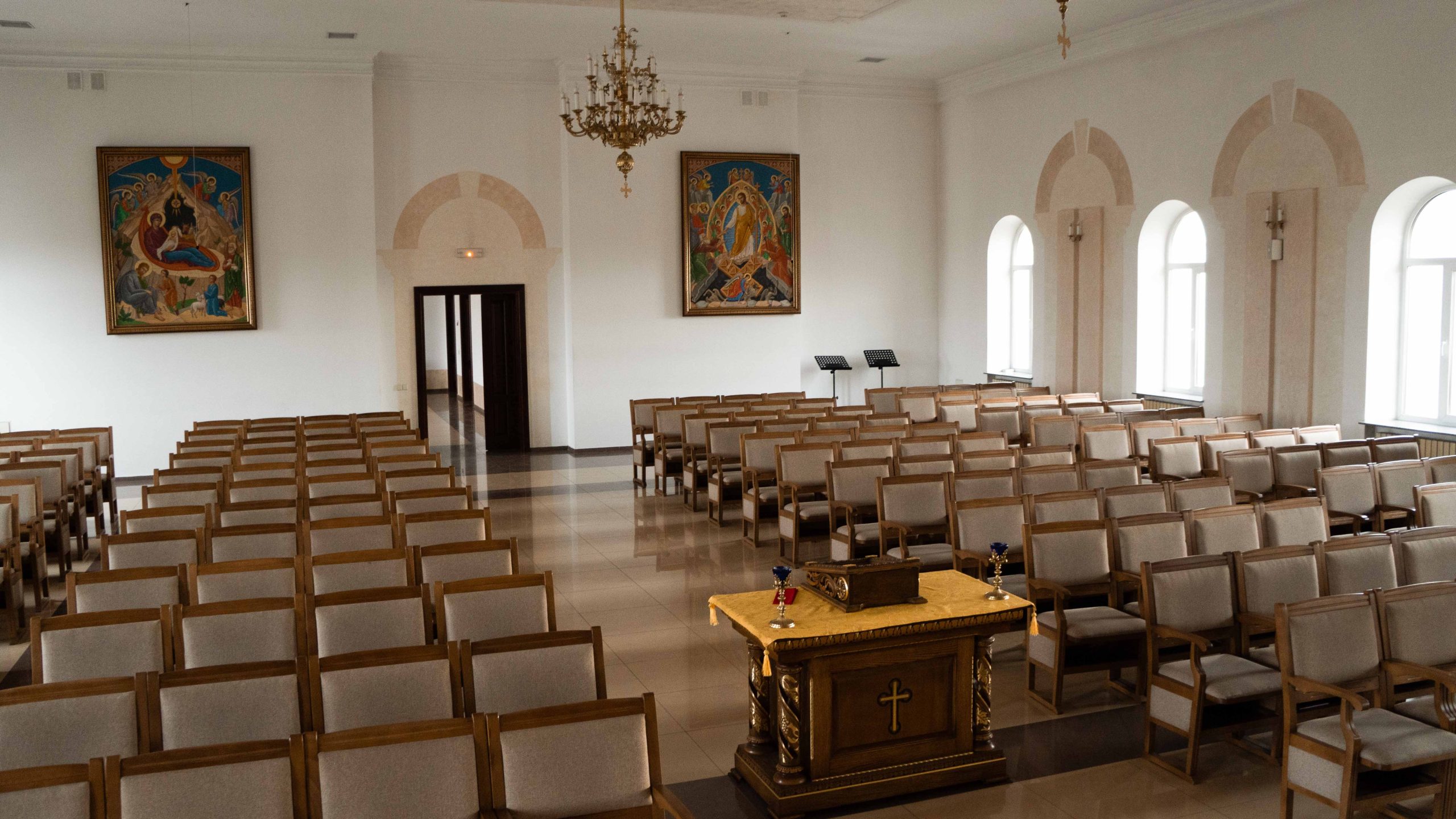 На другому поверсі розміщені рекреаційна кімната, кухня для приватного вжитку, а також два крила із келіями для проживання.