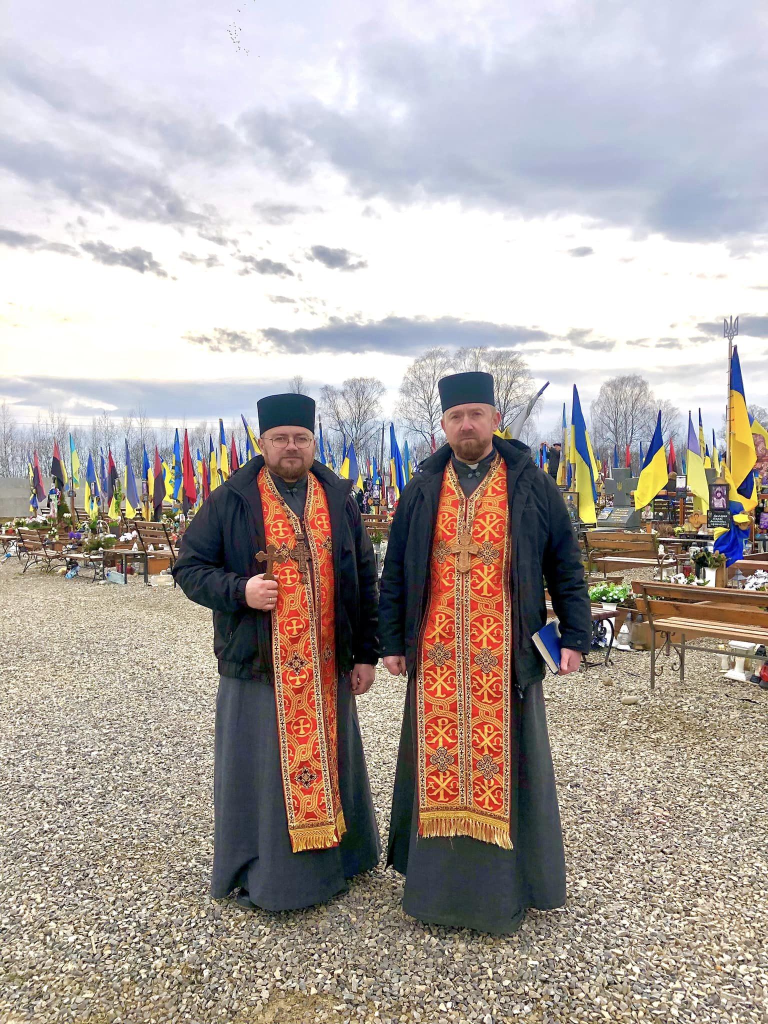 Опісля священники парафії о. Іван Сас та о. Андрій Заліський з усіма охочими відвідали Алею слави міського кладовища, щоб помолитися панахиди на могилах полеглих парафіян та друзів, які віддали життя, захищаючи нашу Батьківщину.