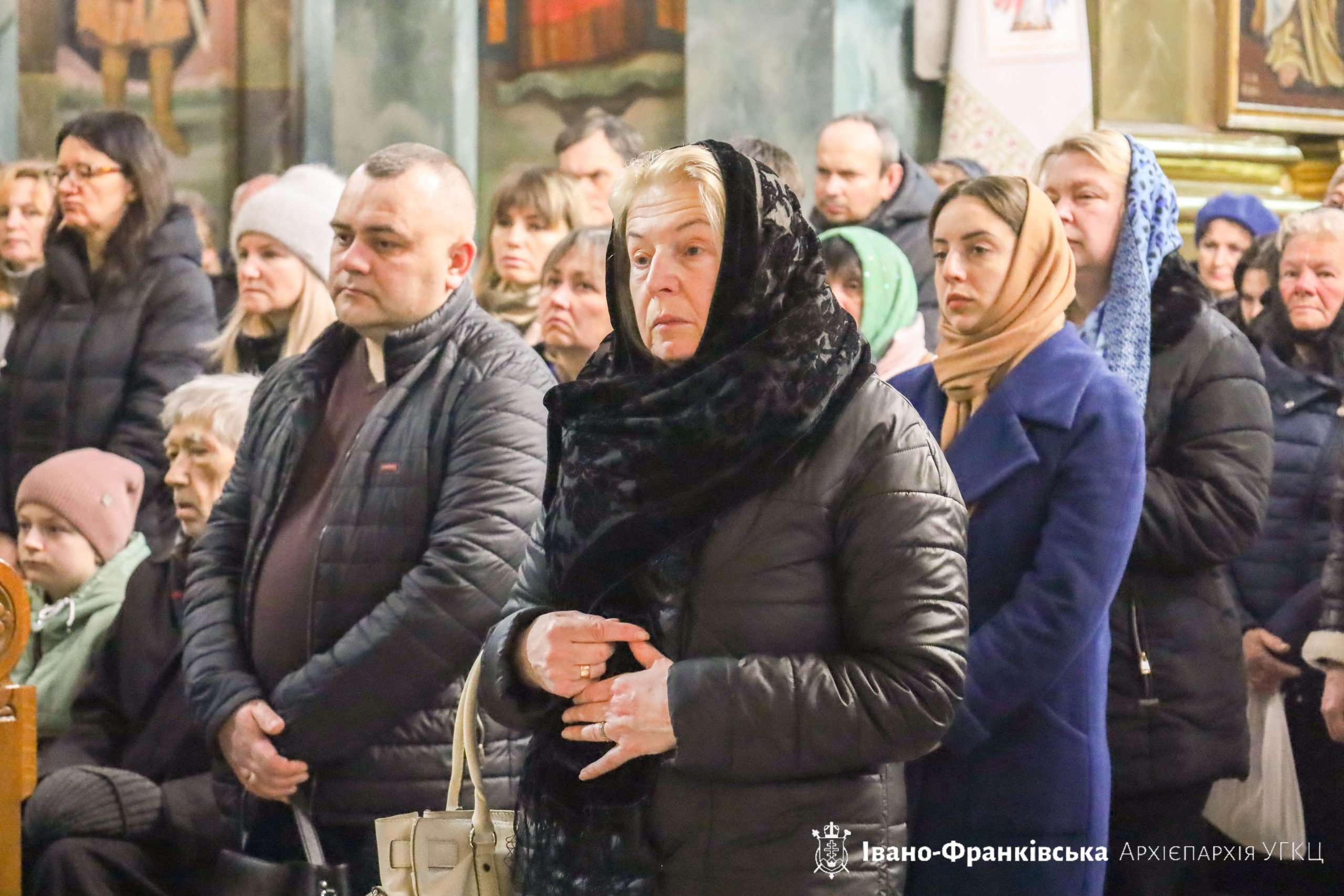 Зокрема, в Архікатедральному і Митрополичому соборі Воскресіння Христового зібралися сотні людей, серед яких родичі полеглих Героїв, їхні друзі та знайомі, а також багато небайдужих мешканців нашого міста, які вирішили розпочати цей день з молитви. Моління почалися із Божественної Літургії, яку очолив о. Юрій Новіцький, настоятель Архікатедрального собору та протопресвітер Центральний, у співслужінні духовенства святині та отців проводу Івано-Франківської духовної семінарії ім. свщмч. Йосафата. Відтак присутні у храмі помолилися Парастас за всіх полеглих у жорстокій російсько-українській війні.