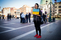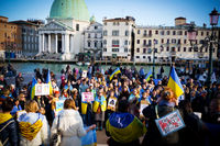 Венеція в ці дні теж перетворилася на море жовто-блакитних прапорів. Сотні українців та небайдужих італійців приєдналися до акції на площі перед центральним вокзалом міста — Санта-Лучія. Участь в заході взяв о. Теодосій Грень, ЧСВВ, Протосинкел Екзархату, та Михайло Лехновський, ЧСВВ. Отець-протосинкел звернувся до присутніх українською та італійською мовами і закликав українців не опускати рук, але молитвою та конкретними діями не втомлюватися підтримувати наших військових та народ, що переживає страждання, а також не втрачати надії на повернення миру та здобуття перемоги добра над злом.
