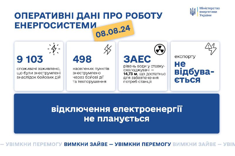 ‼️ Про ситуацію в українській енергосистемі станом на 0️⃣8️⃣ серпня читайте 👉 тут