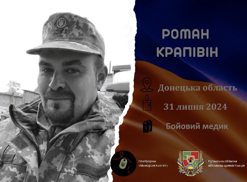 31 липня 2024 року на Донецькому напрямку загинув бойовий медик Роман Крапівін.