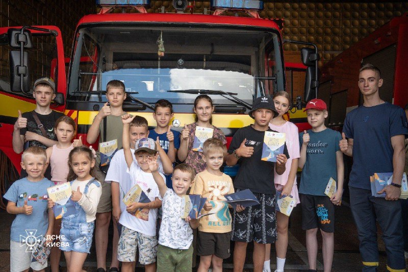 Команда працівників ДСНС 9-ої Державної пожежно-рятувальної частини столиці радо зустріла юних гостей та організувала для дітей захопливу екскурсію.
