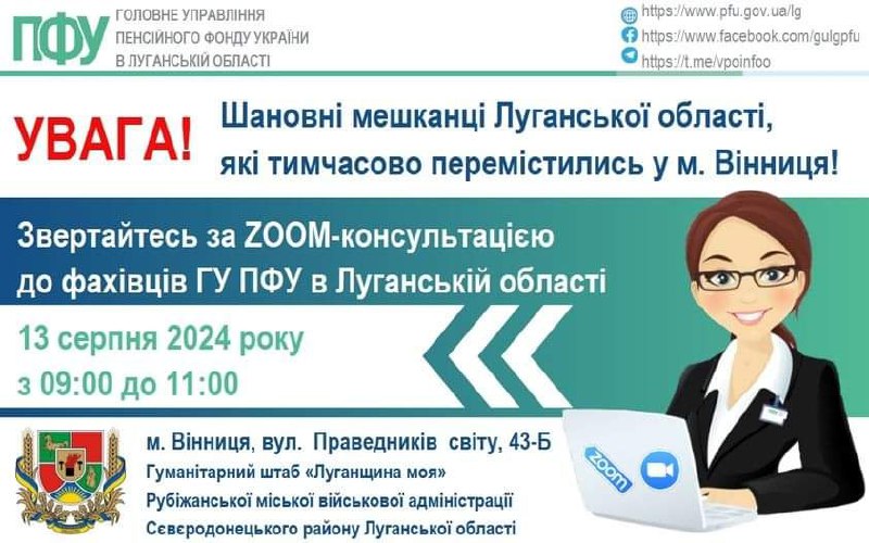 У Вінниці 13 серпня вам нададуть роз’яснення пенсійники Луганщини 13 серпня з 9:00 до 11:00 спеціаліст Головного…