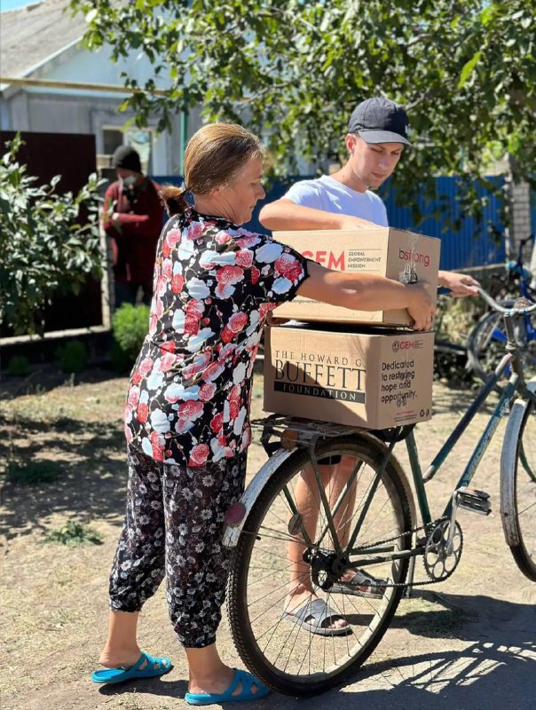 Пакунки із продуктами тривалого зберігання роздали мешканцям сіл Петрівка, Богданівка та Сонячне. Допомога надійшла від гуманітарної місії Global Empowerment Mission та Howard G. Buffett Foundation.