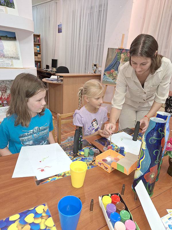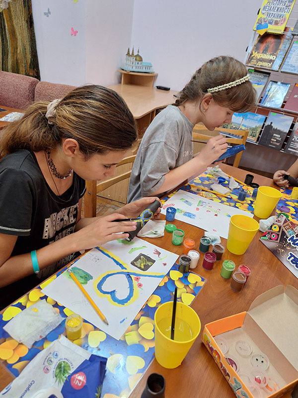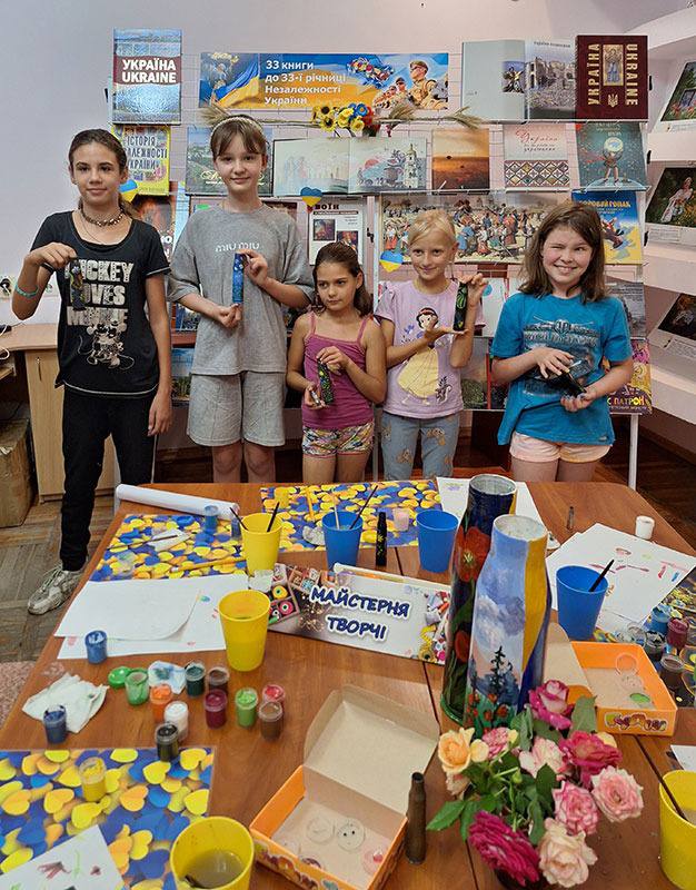 У Херсонській обласній бібліотеці для юнацтва ім. Б. А.Лавреньова у межах майстерні "Творчі" керівниця художньої студії «АРТ Kid’s» Оксана Ліпей вчила юних відвідувачів розмальовувати порожні гільзи.