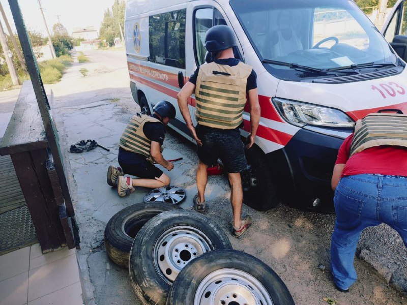 ❗️На фото — карета “швидкої”, яку учора ввечері росіяни атакували з безпілотника у Херсоні.