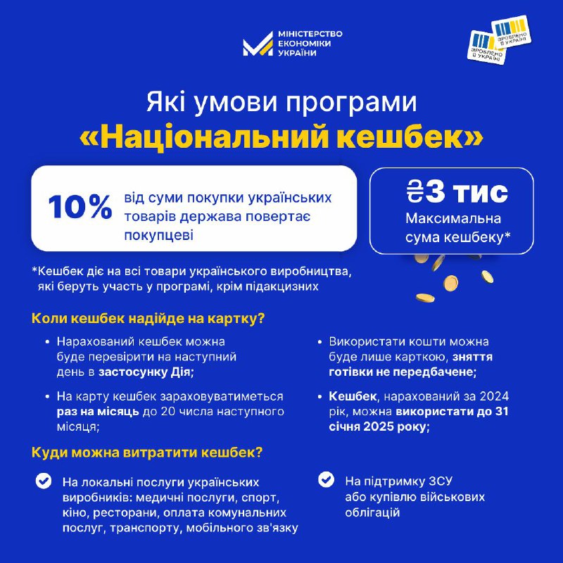 Кешбек надаватиметься на будь-які споживчі товари українського виробництва за виключенням підакцизних товарів. Зокрема, й на ліки українського виробництва.