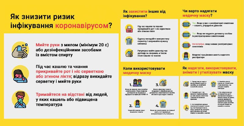 За наявності симптомів не забувайте змінювати маску кожні три години або після її забруднення. І обов’язково мийте руки після зняття маски.