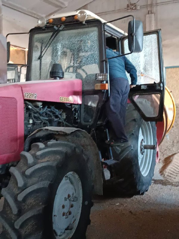 Через скидання вибухівки з дрона пошкоджено два трактори, навантажувач, вантажівку та комбайн. Також у приміщенні вибито шибки.