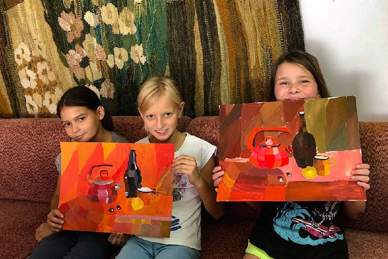 Творчий процес приніс малечі величезне задоволення, а кінцевим результатом стали барвисті натюрморти, які відобразили освоєння нових художніх технік.