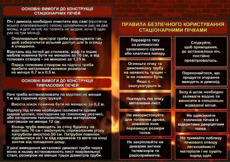 Основним засобом обігріву у багатьох домогосподарствах є пічне опалення, але при його використанні необхідно дотримуватися низки важливих правил для того, щоб уникнути пожеж та нещасних випадків.