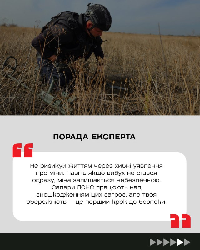 Гортай карусель та дізнайся правду про вибухонебезпечні предмети, щоб убезпечити себе та своїх близьких☝️