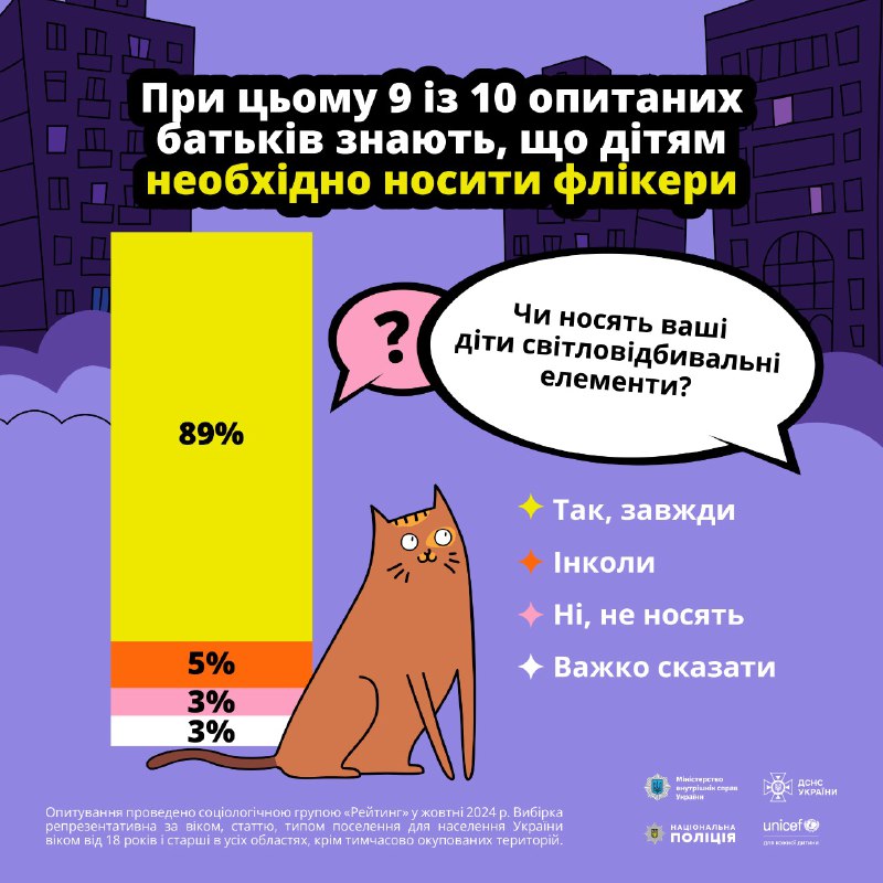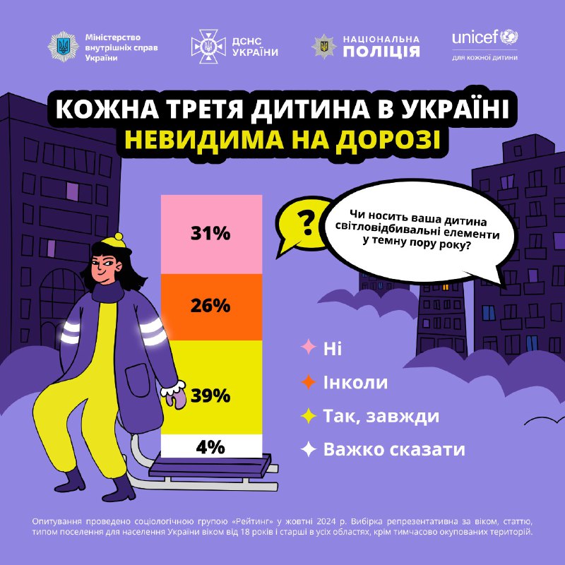 🔦 Лише 11% українців постійно використовують світловідбивальні елементи для безпеки у темну пору доби.