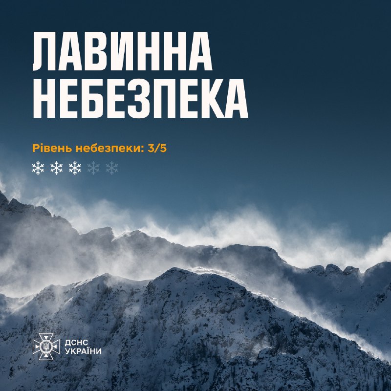 ⚠️Увага! Сніголавинна небезпека! ❄️28-29 січня у зв’язку з відлигою на високогір’ї Івано-Франківської… 28.01.2025, Вівторок | 14:32 Автор допису: Державна служба з надзвичайних ситуацій ⚠️Увага! Сніголавинна небезпека! ❄️28-29 січня у зв’язку з відлигою на високогір’ї Івано-Франківської та Закарпатської областей очікується значна сніголавинна небезпека — 3 рівень. Будьте обережними під час планування поїздок у гори. Пам’ятайте про свою безпеку та безпеку інших! Джерело Друк / PDF