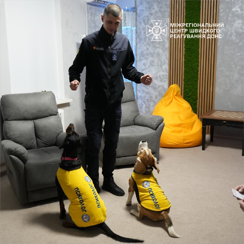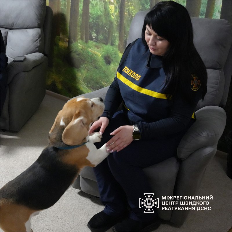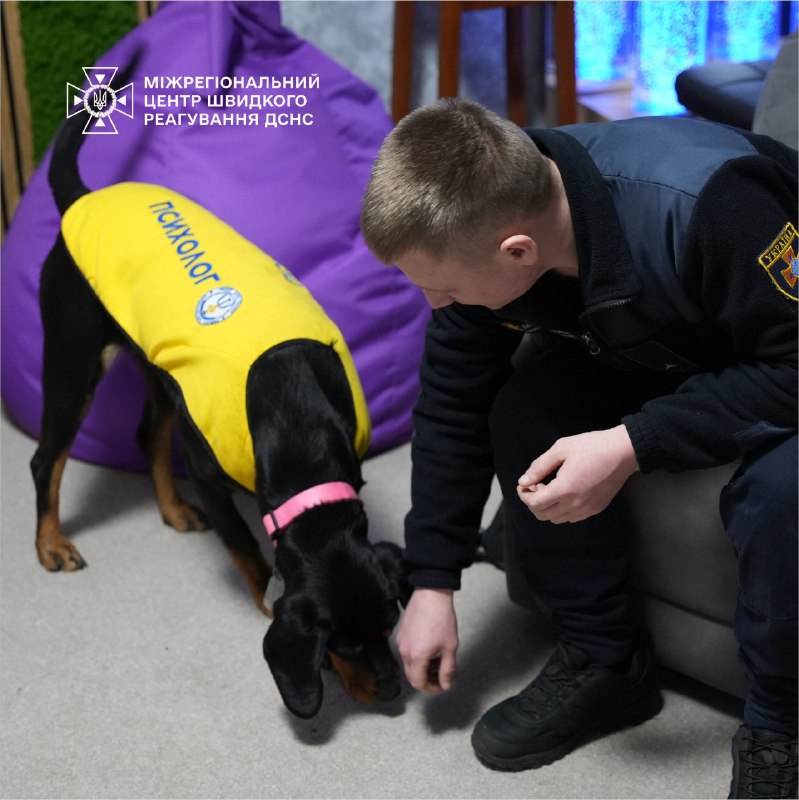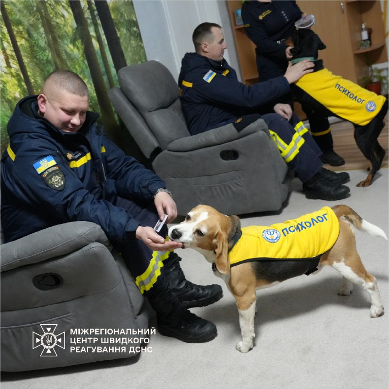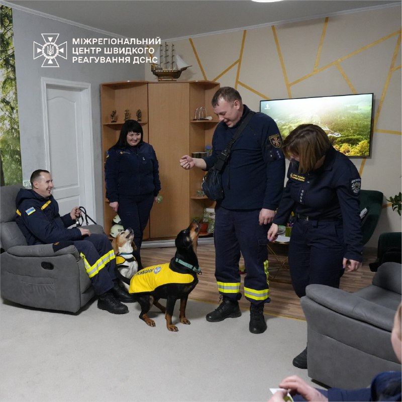 🦮Психолог і кінолог МЦШР ДСНС України організували спілкування з собаками Тото і Терою, що допомогло особовому складу знизити стрес і покращити настрій.