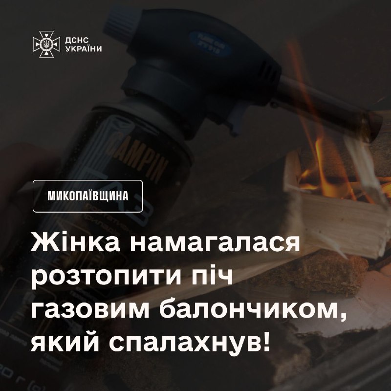 На Миколаївщині жінка намагалася розтопити піч за допомогою газового цангового аерозольного балончика, який спалахнув 😱