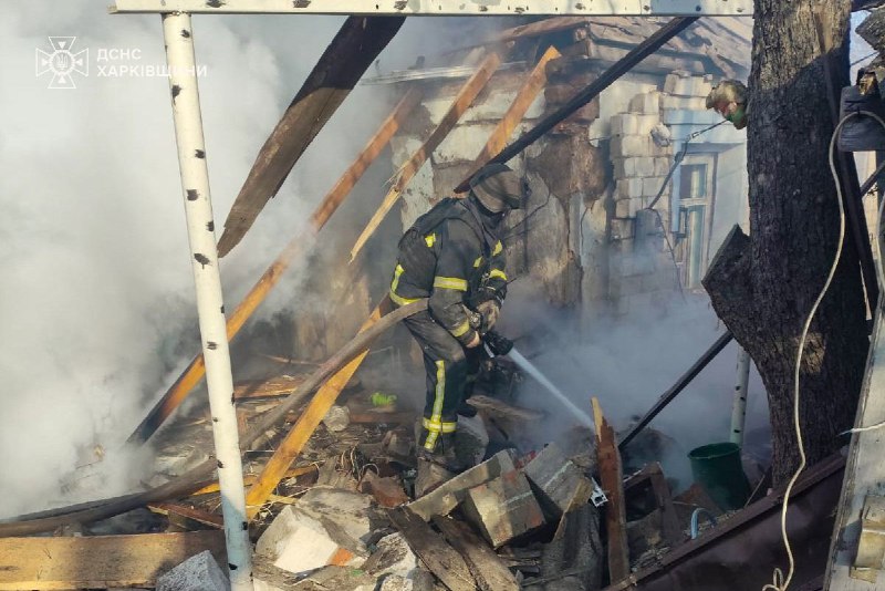 ‼️російські окупанти сьогодні обстріляли м. Куп’янськ, що на Харківщині Виникла пожежа у приватному будинку