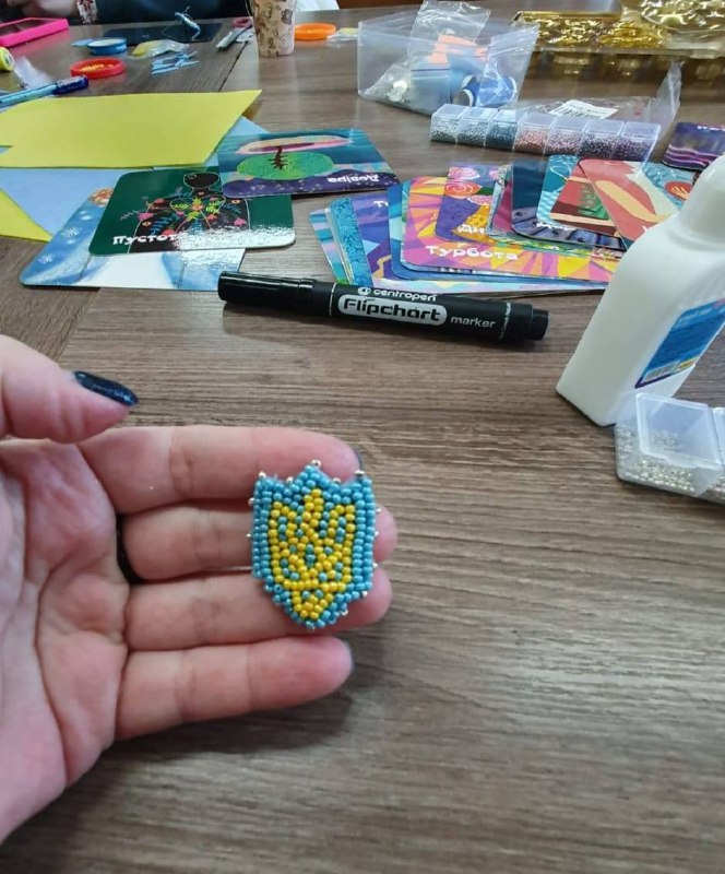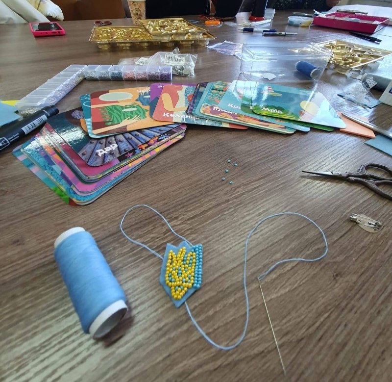 Під час заняття учасники власноруч виготовляли яскраві брошки із зображенням герба України.