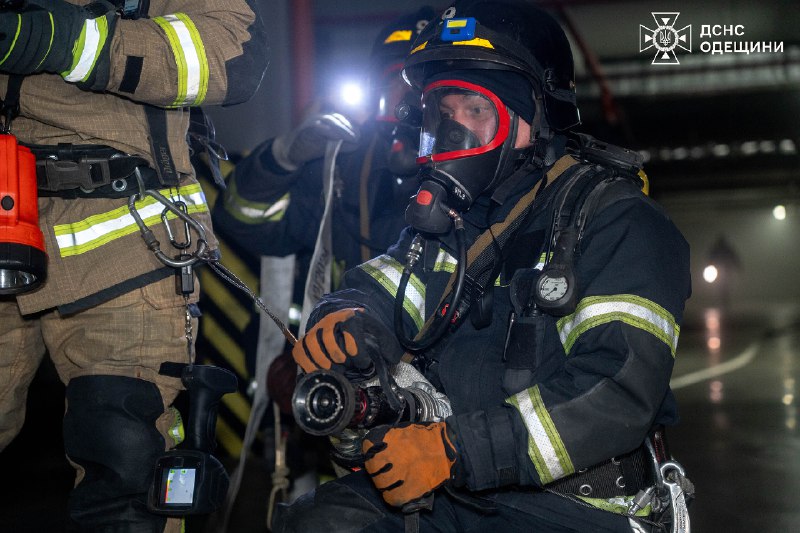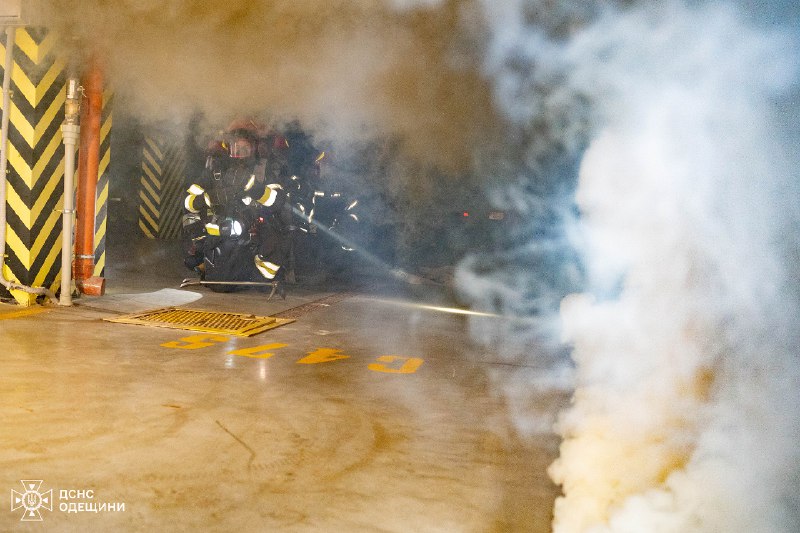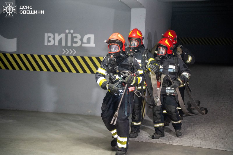 👩‍🚒Одеські рятувальники тренувалися ліквідовувати пожежу в підземному паркінгу багатоповерхового житлового комплексу міста