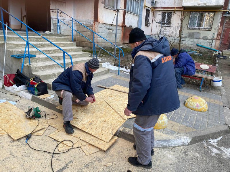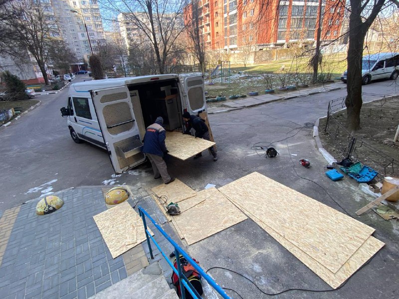 Вони виконали першочергові ремонтні роботи – зашили OSB-листами 75 потрощених вікон.