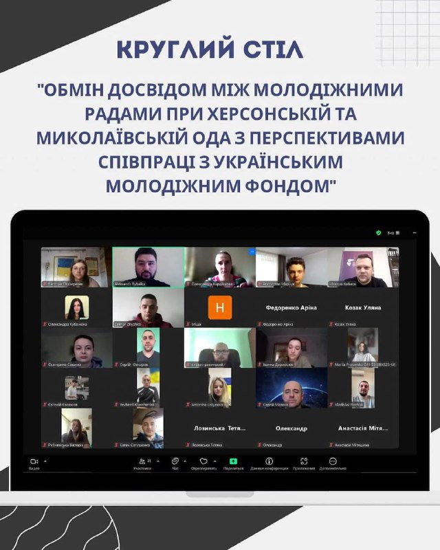 Молодіжна Рада при Херсонській ОДА провели онлайн-зустріч із директором Українського молодіжного фонду / Ukrainian Youth Foundation Миколою Кобисею та представниками Молодіжної ради при Миколаївській ОДА.