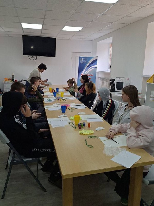 Юнаки і дівчата взяли участь у майстер-класі «Магія без пензлика» від майстерні «Творчі». За допомогою ниток, фарб і пакетів учасники створювали яскраві картини.