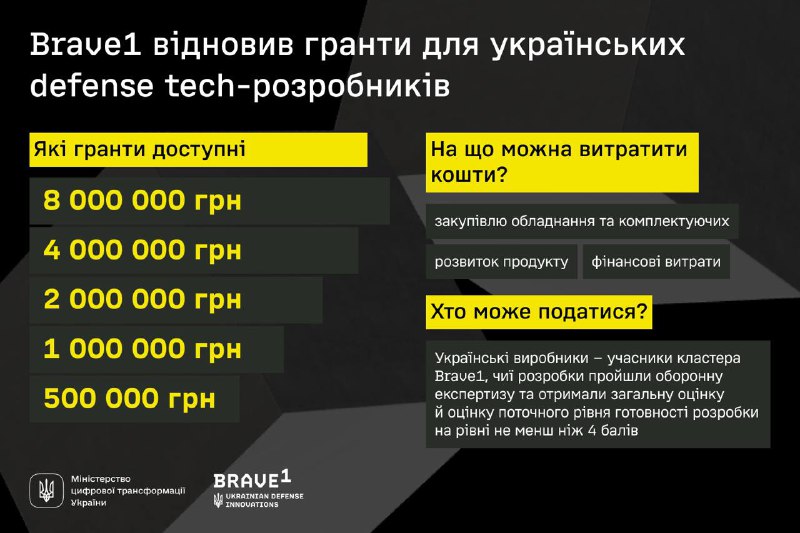 💰 До 8 млн грн на розвиток оборонних інновацій — Brave1 відновив грантову програму