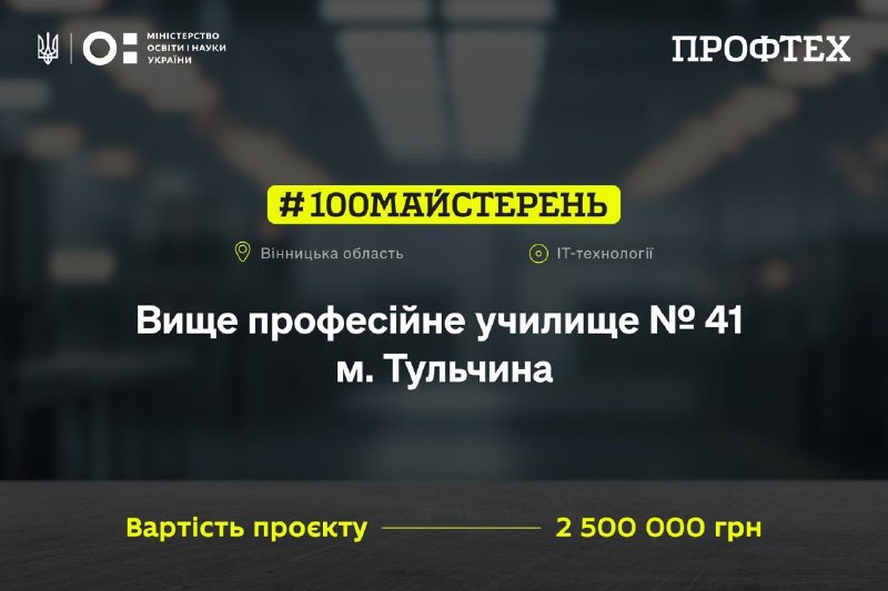 2 млн 608 тис. грн на модернізацію майстерень отримають: ▪️ Вище професійне училище №41 м. Тульчина ▪️ ДПТНЗ «Козятинське міжрегіональне вище професійне училище залізничного транспорту»; ▪️ ДНЗ «Гущинецьке вище професійне училище».