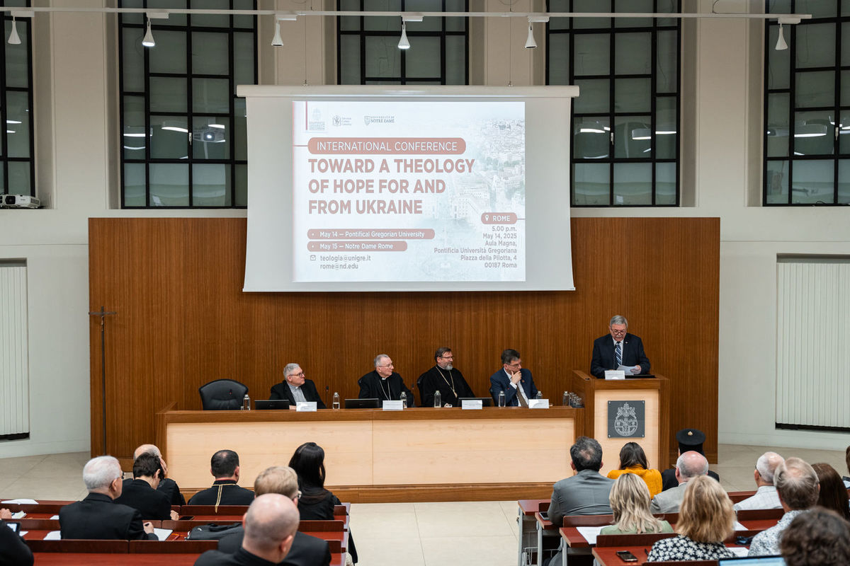 «Християнська надія не є розкішшю для спокійних часів. Україна сьогодні просить нас не лише говорити про надію, але й вчитися від неї, як можна надіятися в окопах, серед руїн, на численних нових кладовищах, під хрестом, але з поглядом, зверненим до неба. Україна потребує надії, яка не приходить ззовні, але проростає зсередини, як зерно. І в цьому Церква покликана до благородного завдання охороняти таїнство надії, яка живе серед болю, не мирячись з цинізмом світу», — сказав кардинал Пʼєтро Паролін, Державний Секретар Святого Престолу, підсумовуючи своє слово, сказане під час відкриття конференції «До богослов’я надії для України та від України», яке відбулося 14 травня 2025 року в Папському Григоріянському Університеті. Дводенну конференцію організував Український католицький університет у співпраці з Папським Григоріанським університетом та Університетом Нотр-Дам (США) під патронатом Блаженнішого Святослава, Глави УГКЦ. Про це розповідає українська редакція «Vatican News».