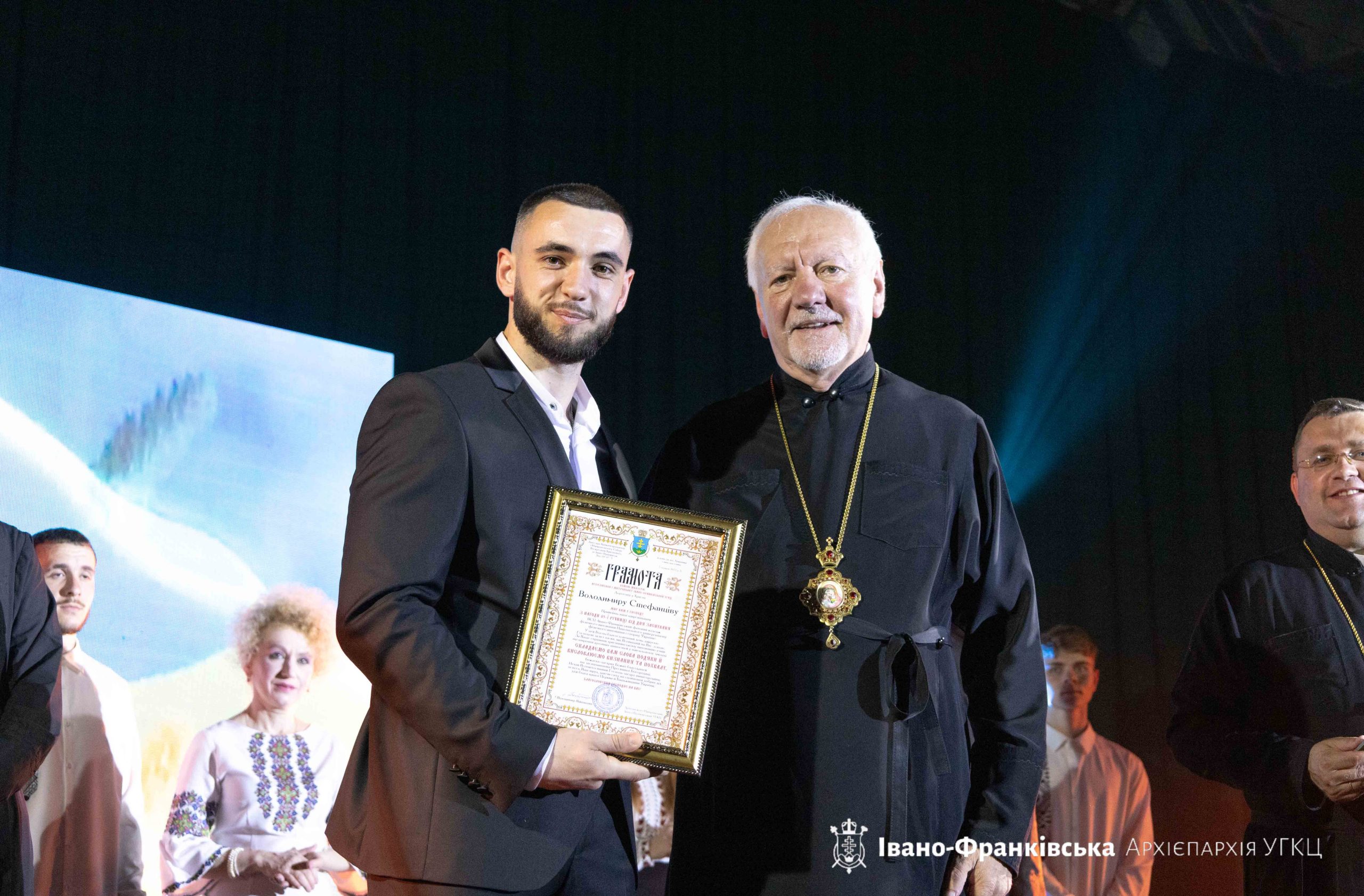 Відтак Владика Володимир доручив о. Миколі Крушецу, заступнику голови Комісії у справах родини й мирян Архієпархії, зачитати Патріаршу грамоту від Блаженнішого Святослава для директора коледжу п. Любомира Пасічняка, активного парафіянина та жертводавця храму Святого архистратига Михаїла с. Козина Івано-Франківської Архієпархії.