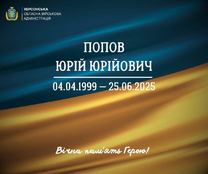 🕯️9:00 – хвилина мовчання за усіма полеглими в російсько-українській війні.   3.07.2025, Четвер | 9:08 Автор допису: Херсонська обласна військова адміністрація 🕯️9:00 – хвилина мовчання за усіма полеглими в російсько-українській війні. Сьогодні Херсонщина проводжає в останню путь відважного Героя, який віддав своє життя за свободу та незалежність України. Солдат Юрій Попов помер у госпіталі внаслідок отриманих поранень. Воїну навіки 26 років… Щирі співчуття рідним та вічна памʼять Захиснику України! Памʼятаємо кожного та кожну, хто віддав життя за Батьківщину! Джерело Друк / PDF
